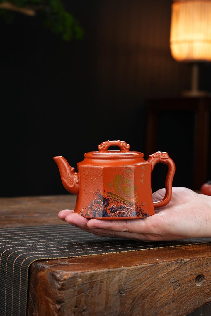 原礦小紅泥手工八方祥瑞茶壺POT6909