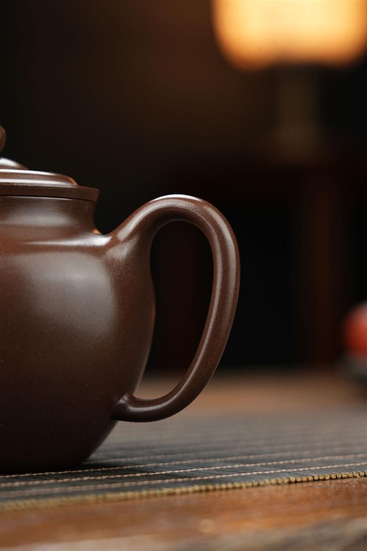 【泥料特點】砂土氣重,似淳實農民,日久使用,漸露鋒芒不成變化甚大,溫潤莊重。線條優美自然,嘴把搭配協調,身頂部細長的把搭配,更顯優雅