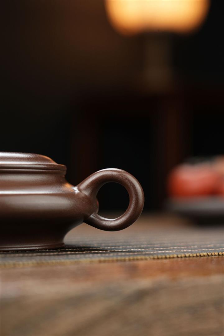 【泥料特點】砂土氣重,似淳實農民,日久使用,漸露鋒芒不成變化甚大,溫潤莊重。線條優美自然,嘴把搭配協調,身頂部細長的把搭配,更顯優雅
