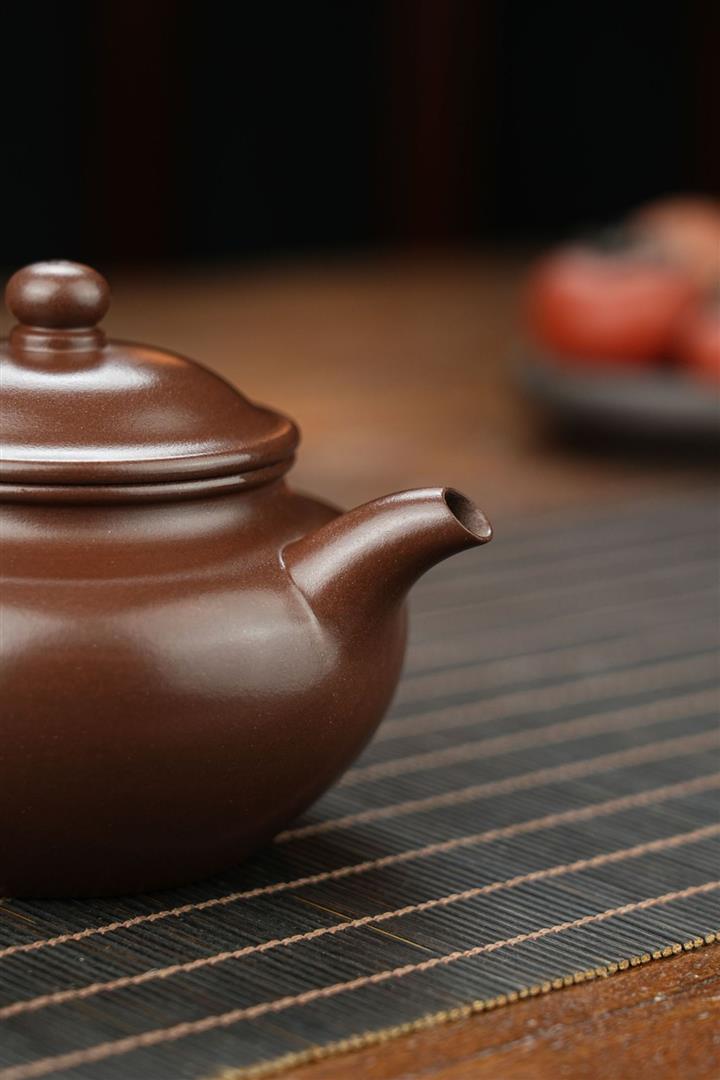 【泥料特點】砂土氣重,似淳實農民,日久使用,漸露鋒芒不成變化甚大,溫潤莊重。線條優美自然,嘴把搭配協調,身頂部細長的把搭配,更顯優雅