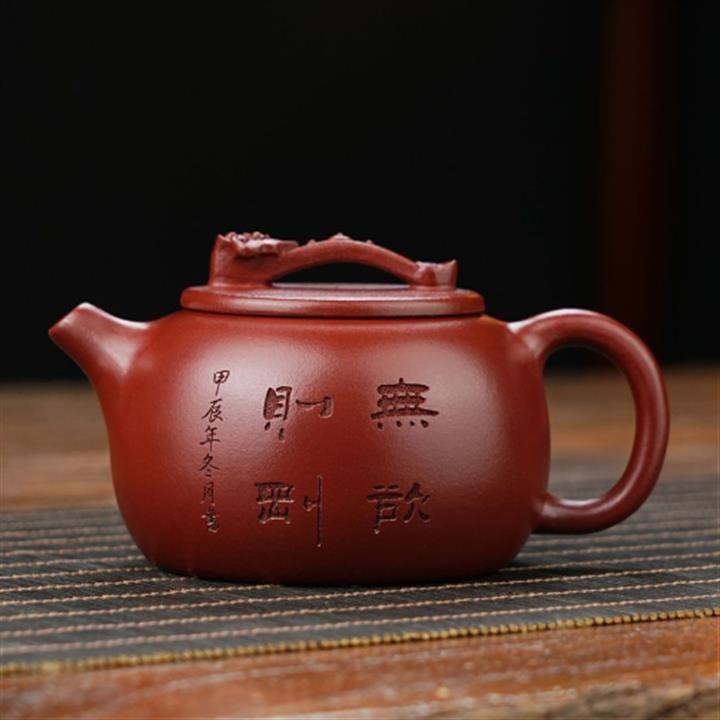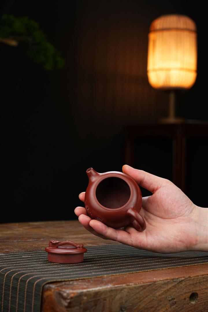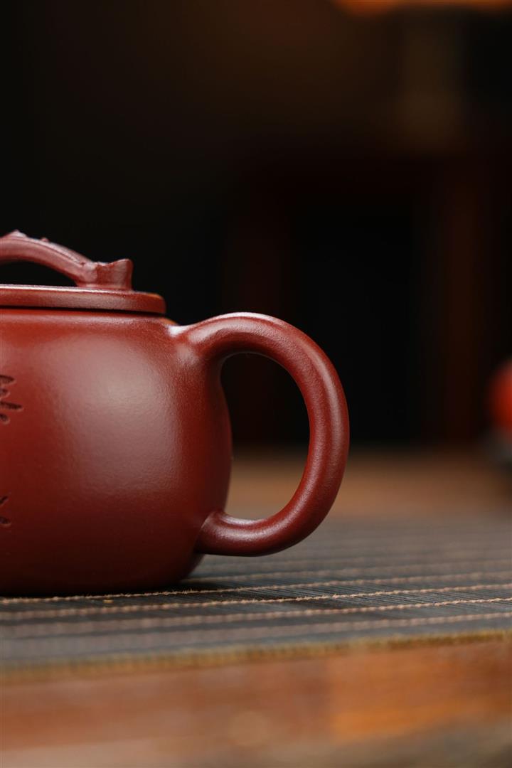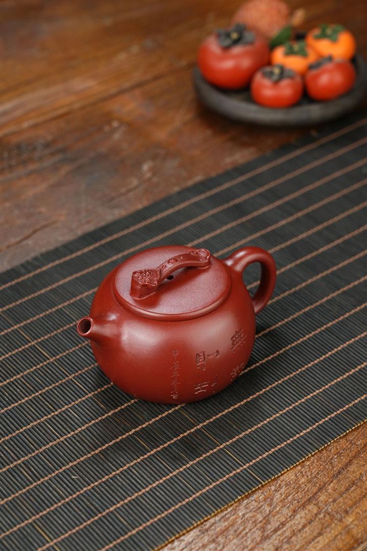 原礦紫泥純手工刻繪子冶石瓢茶壺POT6928