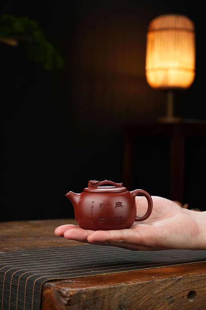 原礦青段泥純手工刻繪周盤茶壺POT6924
