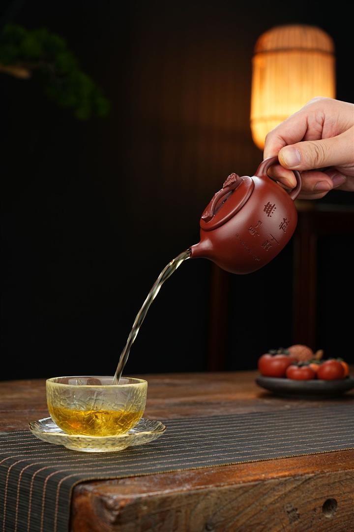 【泥料特點】砂土氣重,似淳實農民,日久使用,漸露鋒芒,養成變化,溫潤莊重。紫砂是壹種雙重氣孔結構的多孔性材質,氣孔微細,密度高。用紫砂壺沏茶,不失原味,且香不渙散,得茶之真香真味。紫砂使用越久,壺身色澤越發光亮照人,氣韻溫雅。紫砂壺長久使用器身會因撫摸擦拭,變得越發溫潤光澤!