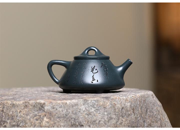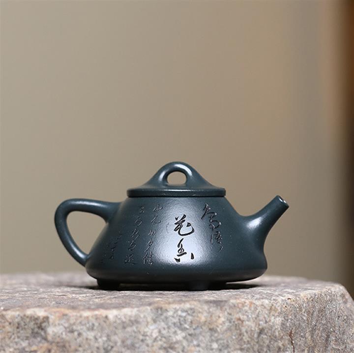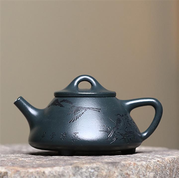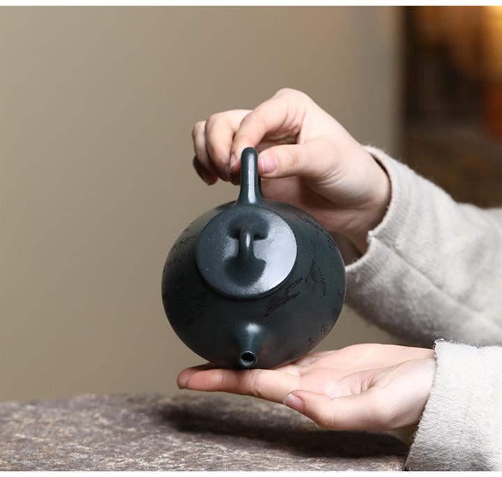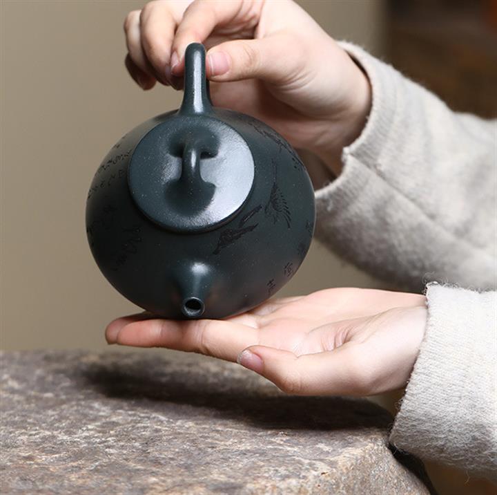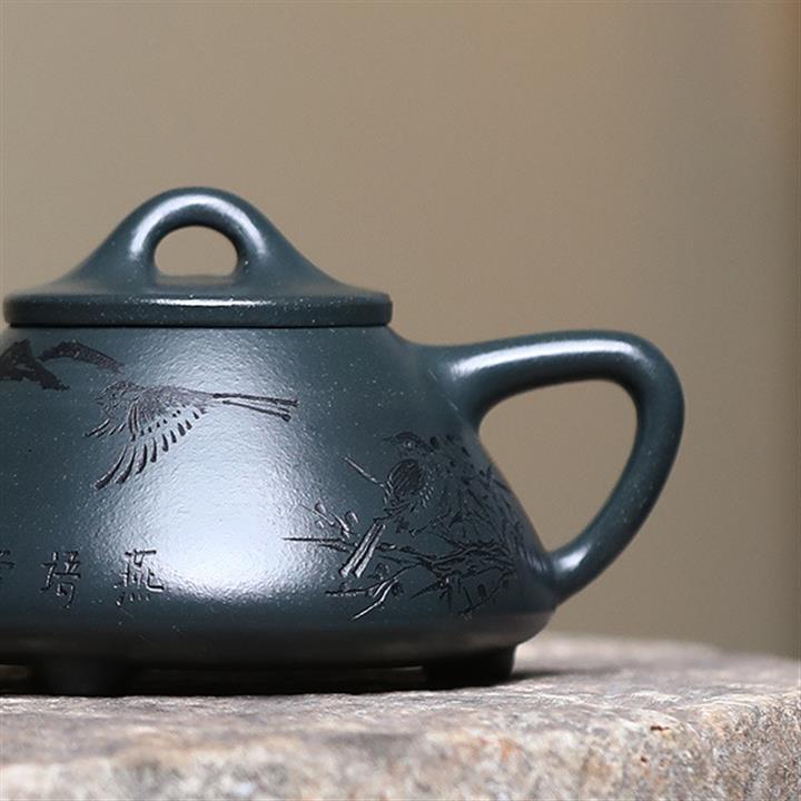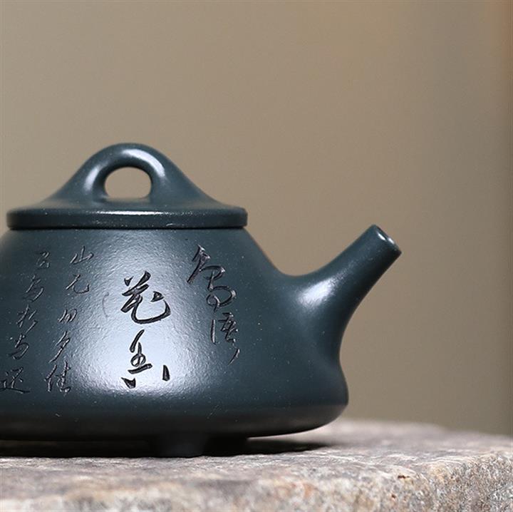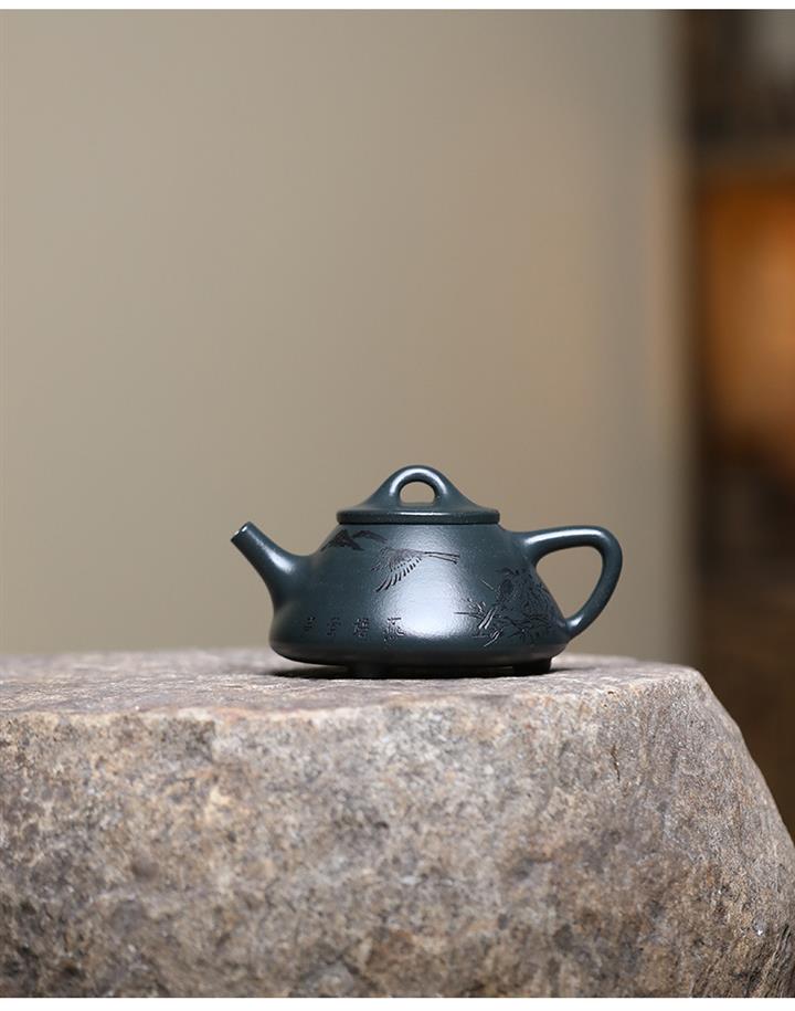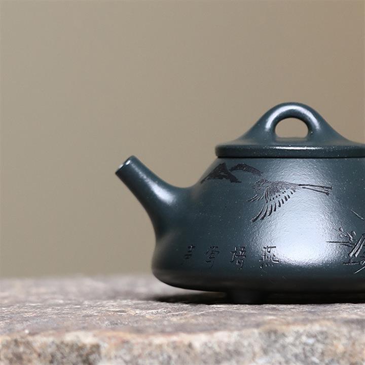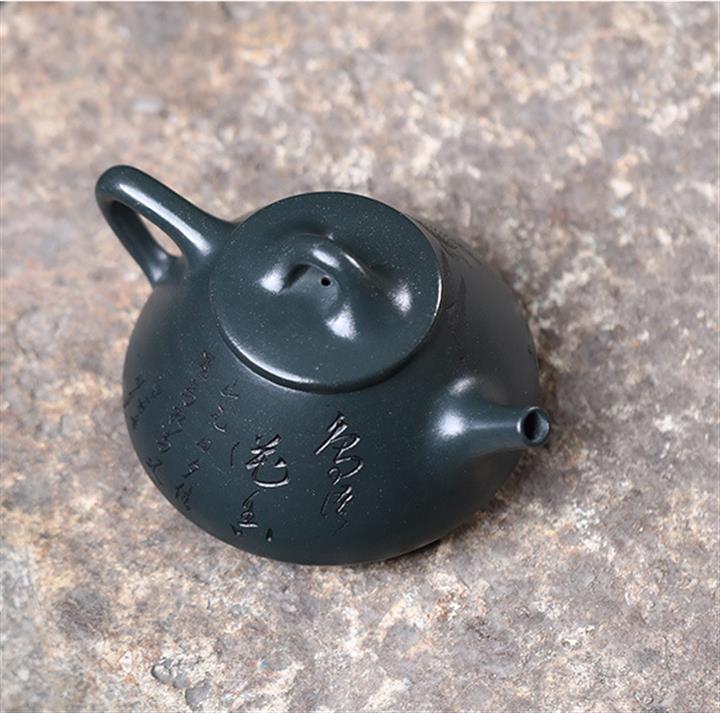 原礦墨綠泥手工刻畫山水仿古茶壺POT6930