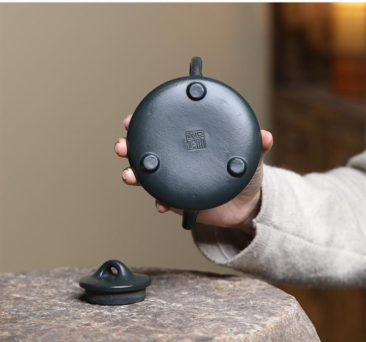 原礦墨綠泥手工秦權老虎茶壺POT6929