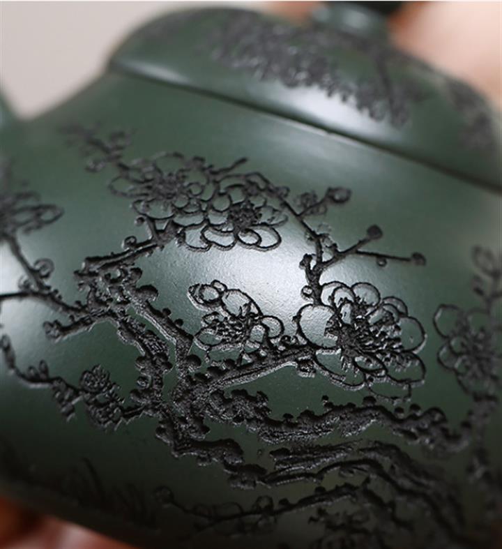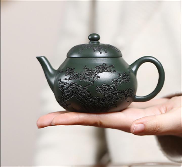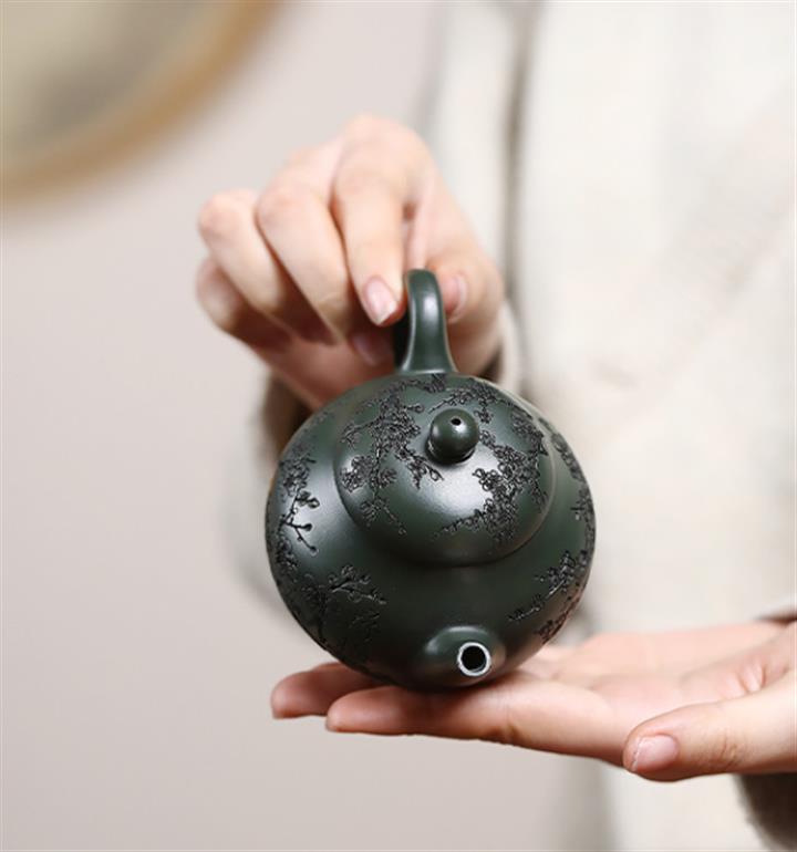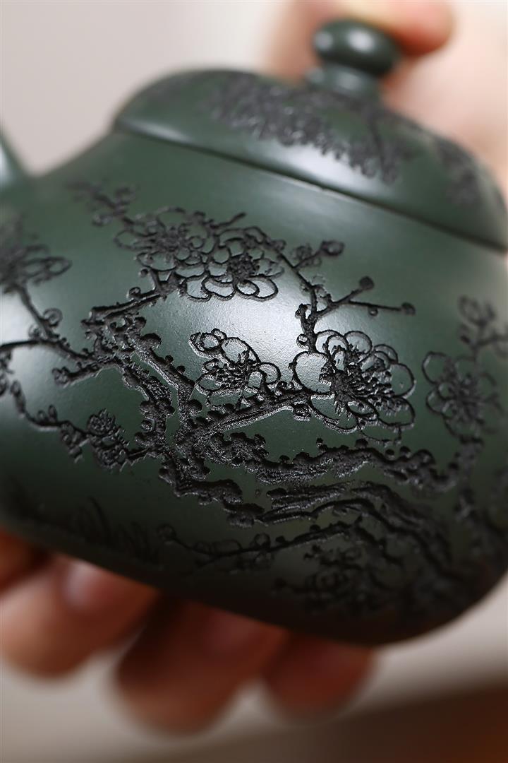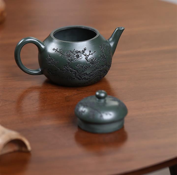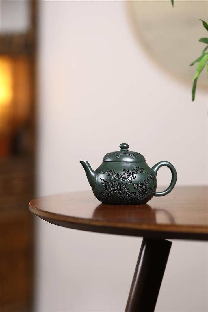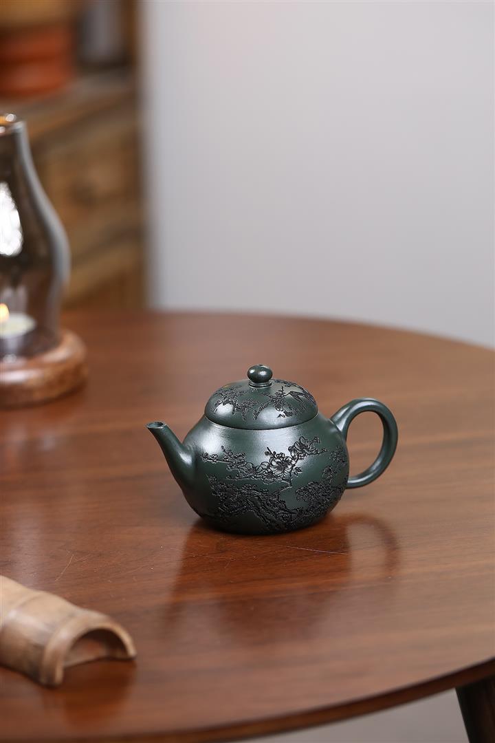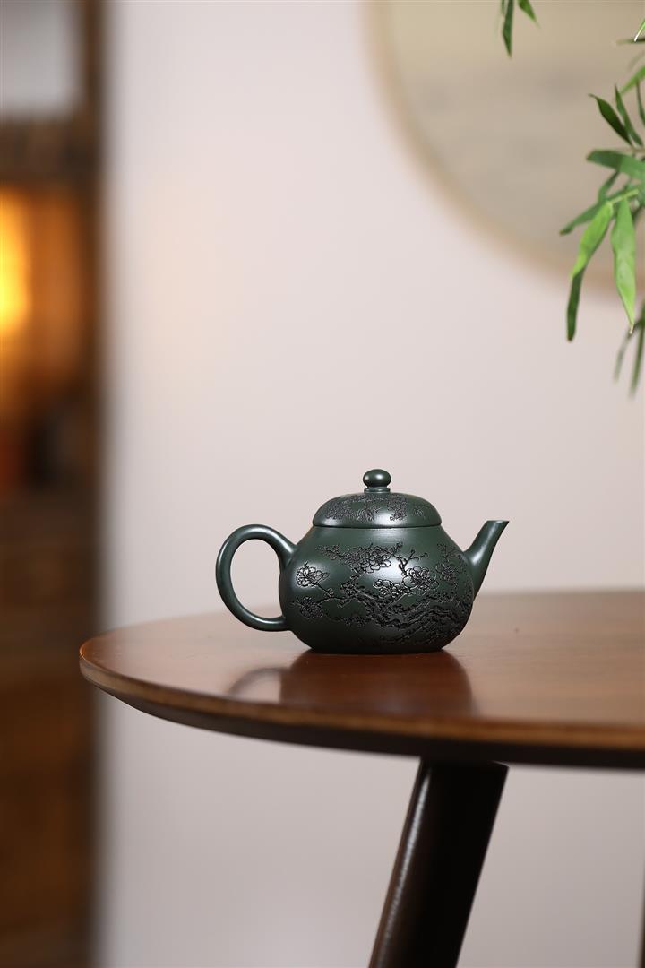 原礦墨綠泥手工暗香梨形茶壺POT6931