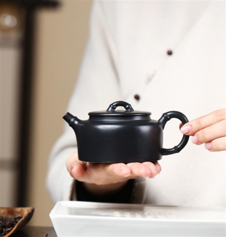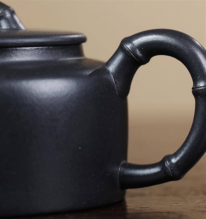 原礦烏青泥純全手竹節平蓋茶壺POT6932