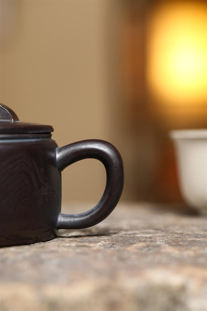 【泥料特點】砂土氣重,似淳實農民,日久使用,漸露鋒芒,養成變化甚大,溫潤莊重。線條優美自然,嘴把搭配協調,身桶配上細長的把搭配,更顯優生動……