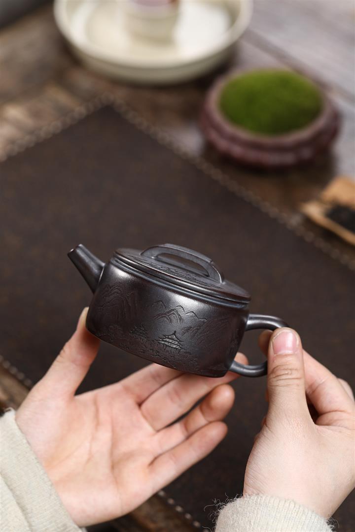 原礦古銅泥匠心手制刻繪漢瓦茶壺POT6934