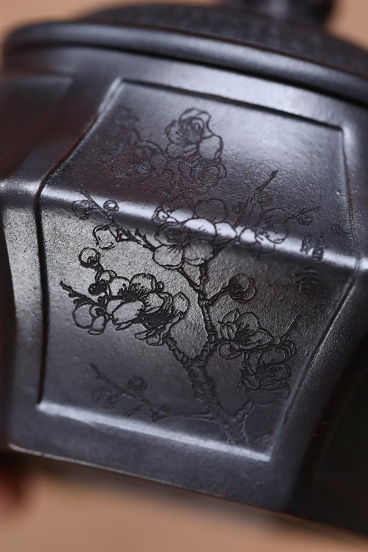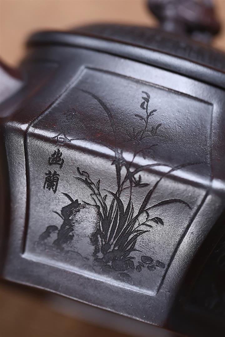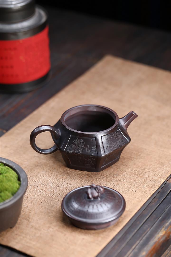 原礦紫泥刻山景雙線雲華茶壺POT6945