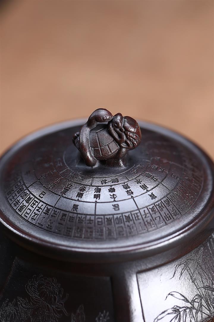 原礦紫泥描金三足爐鼎茶壺POT6940