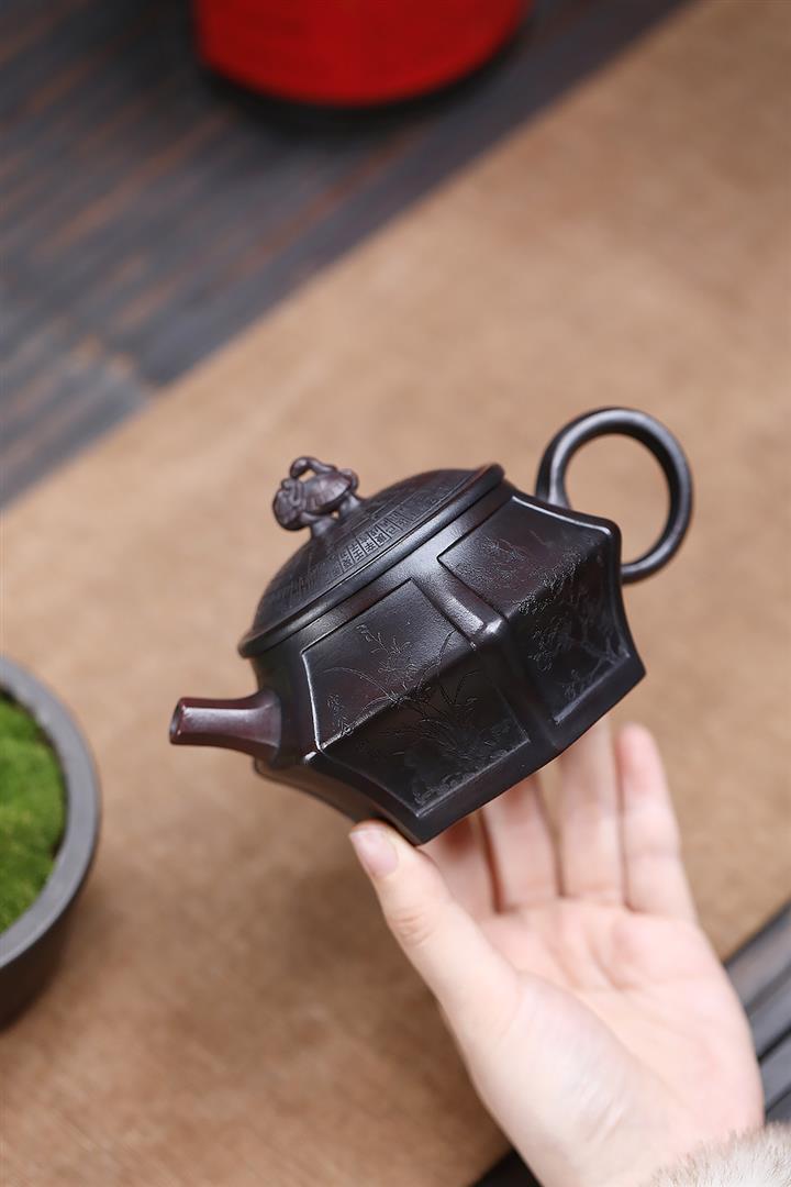 原礦古紅泥純手工八方招財納福茶壺POT6937
