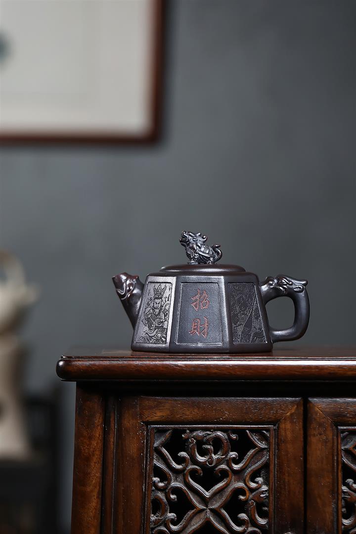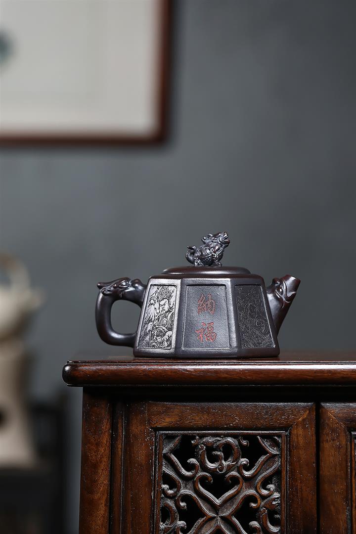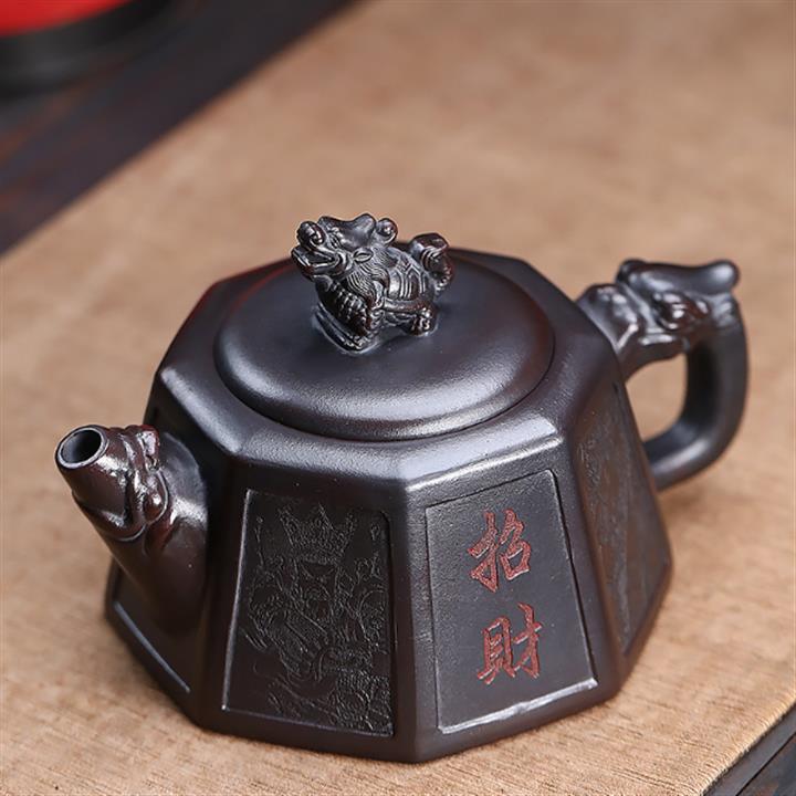 原礦古紅泥純手工八方招財納福茶壺POT6937