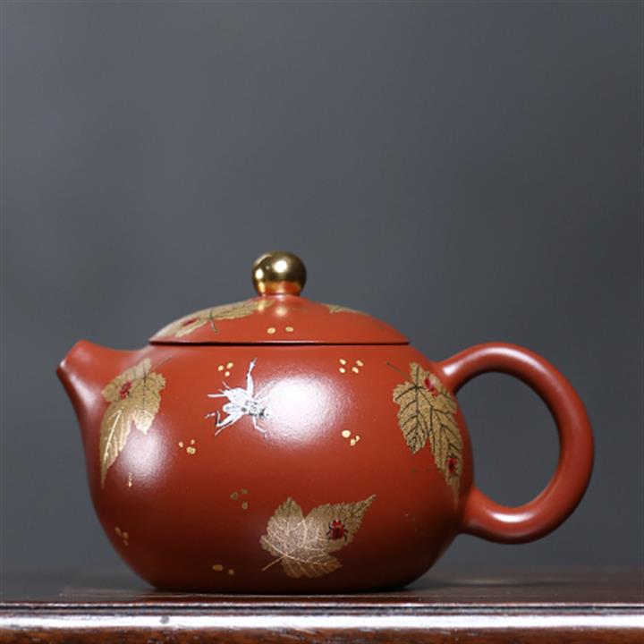 原礦紫泥描金梵蓮仿古茶壺POT6943