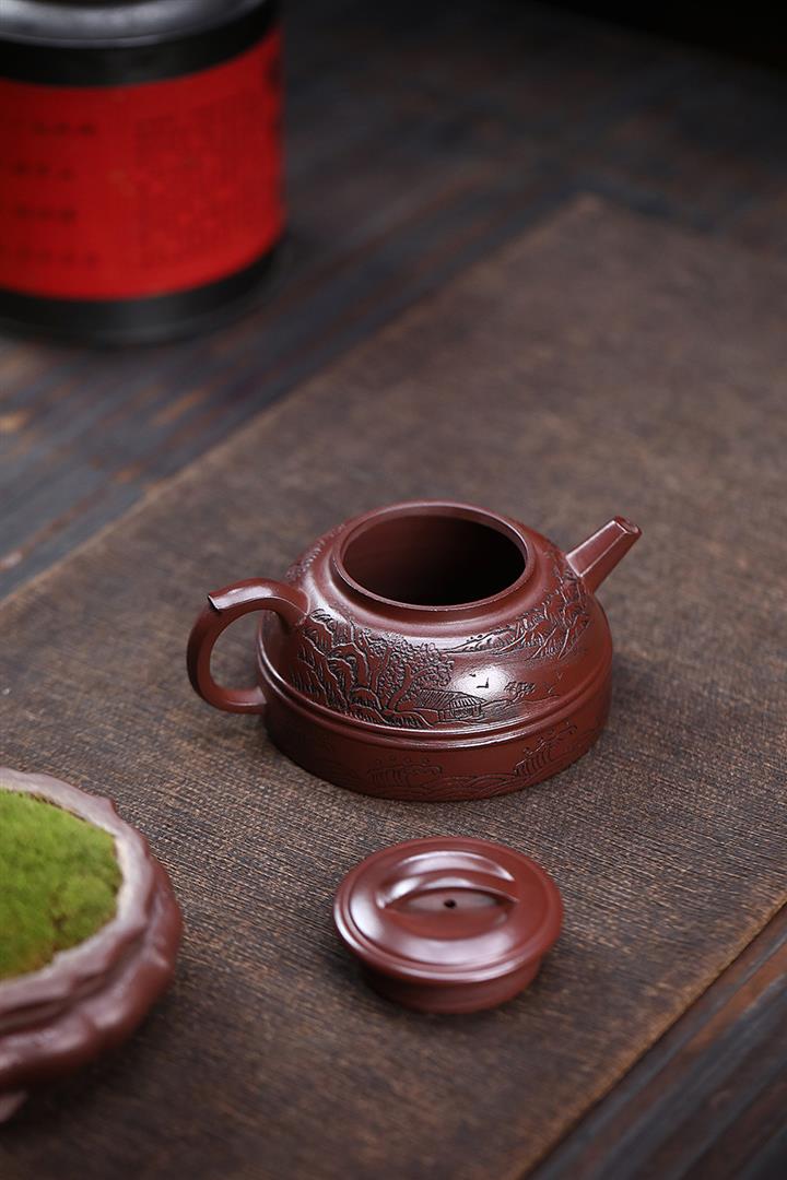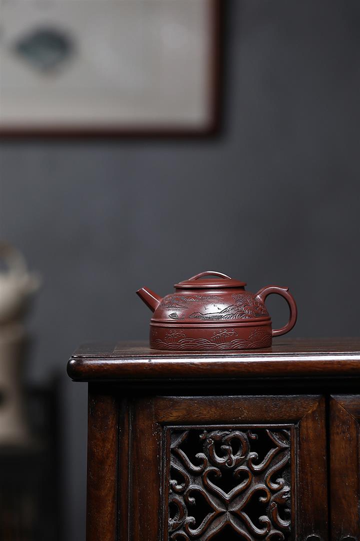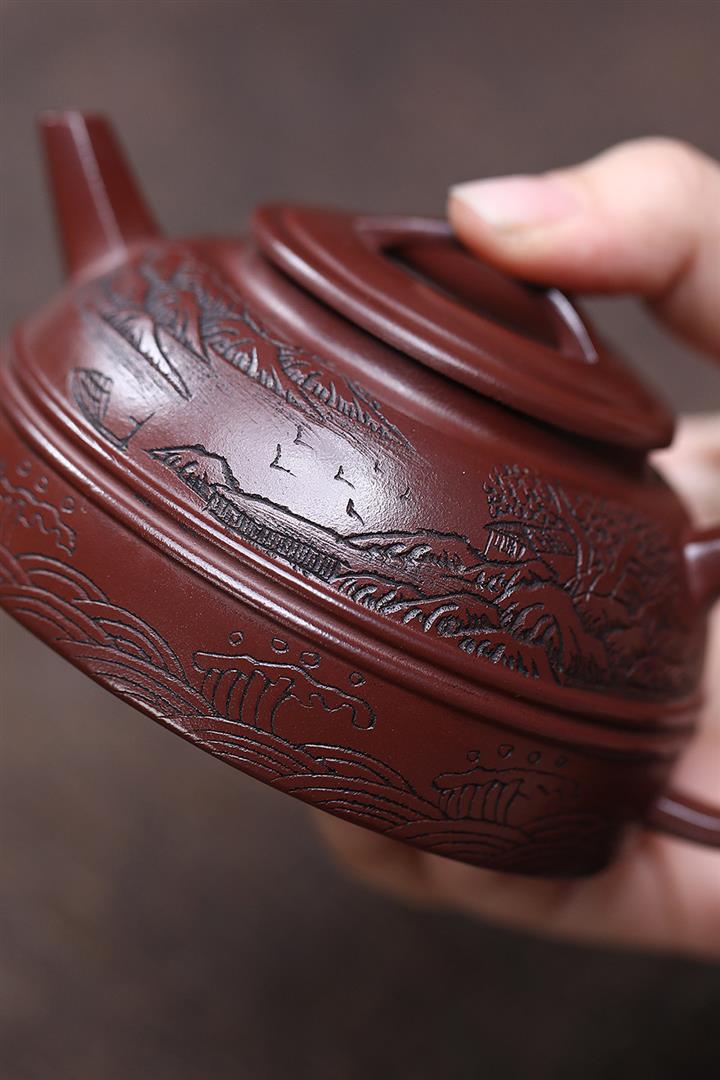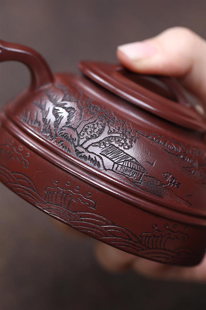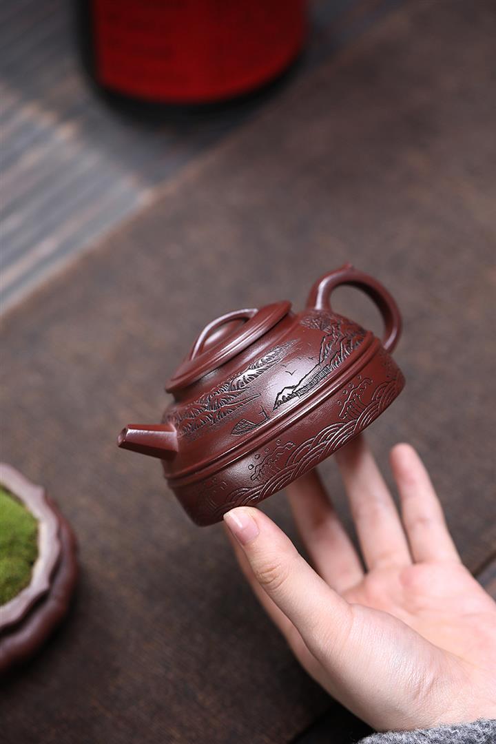 原礦紫泥刻山景雙線雲華茶壺POT6945