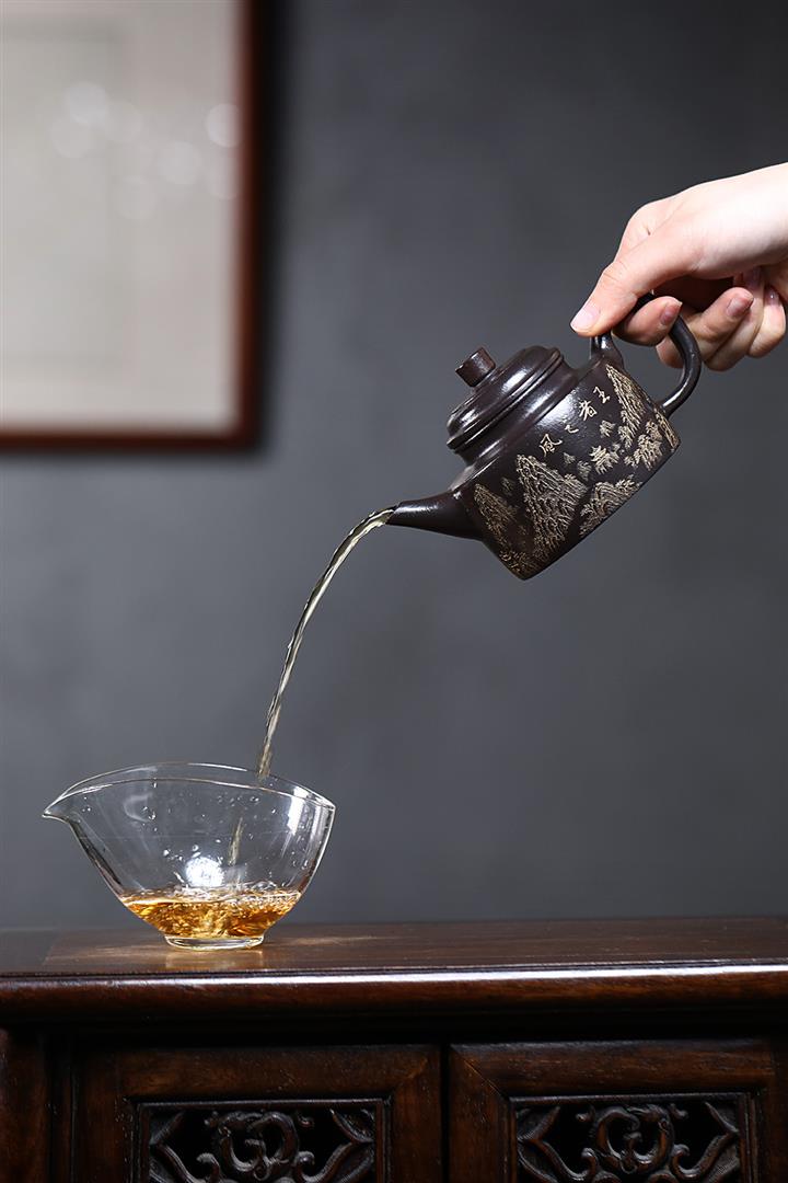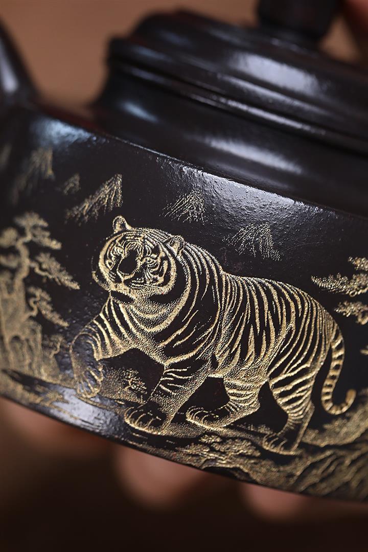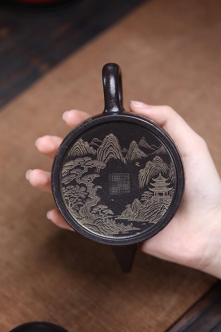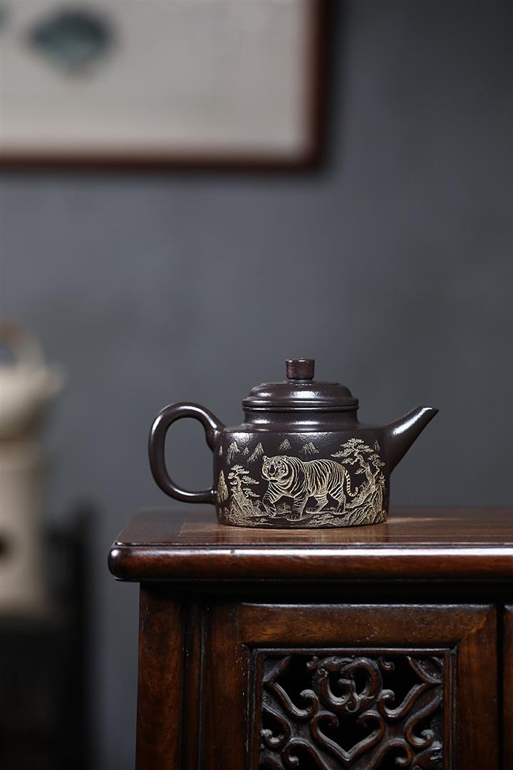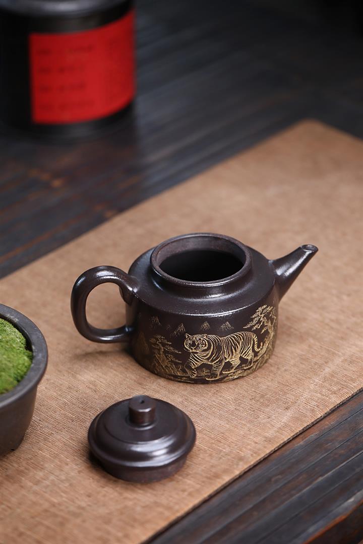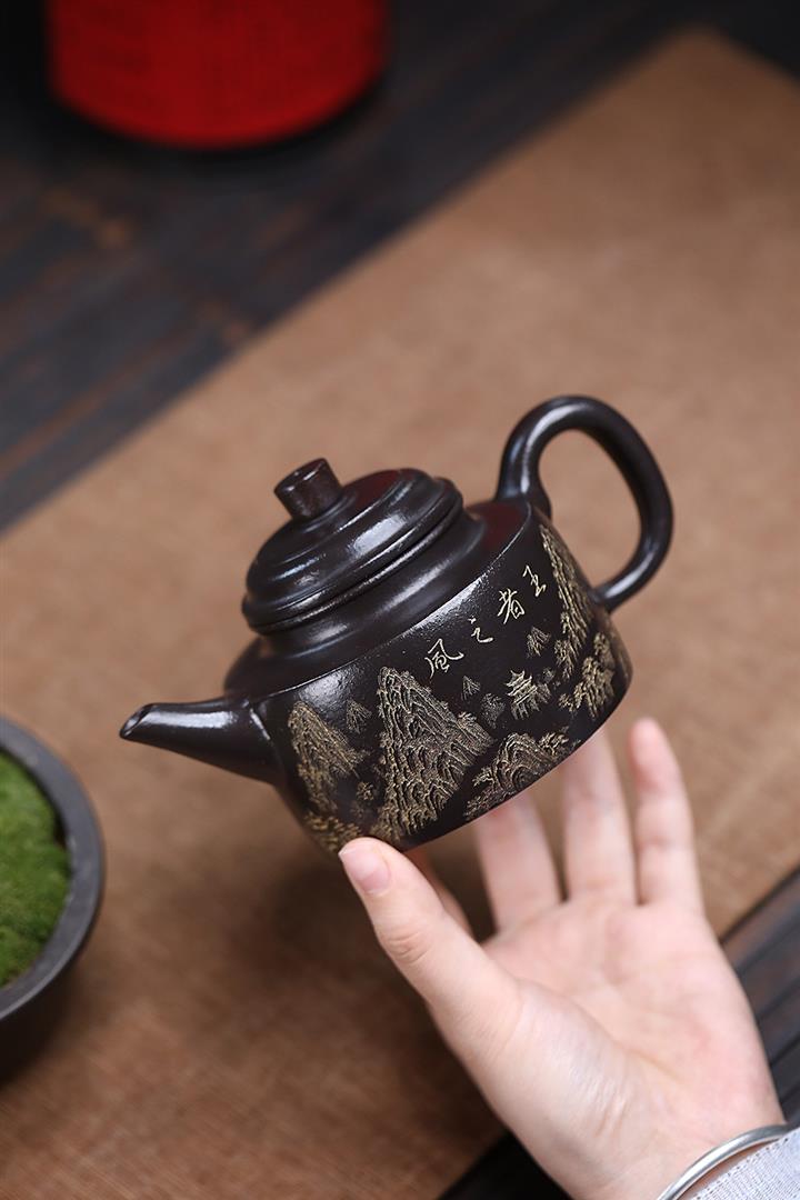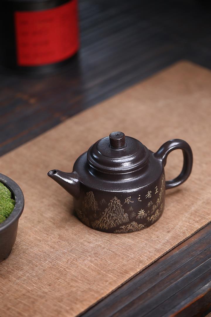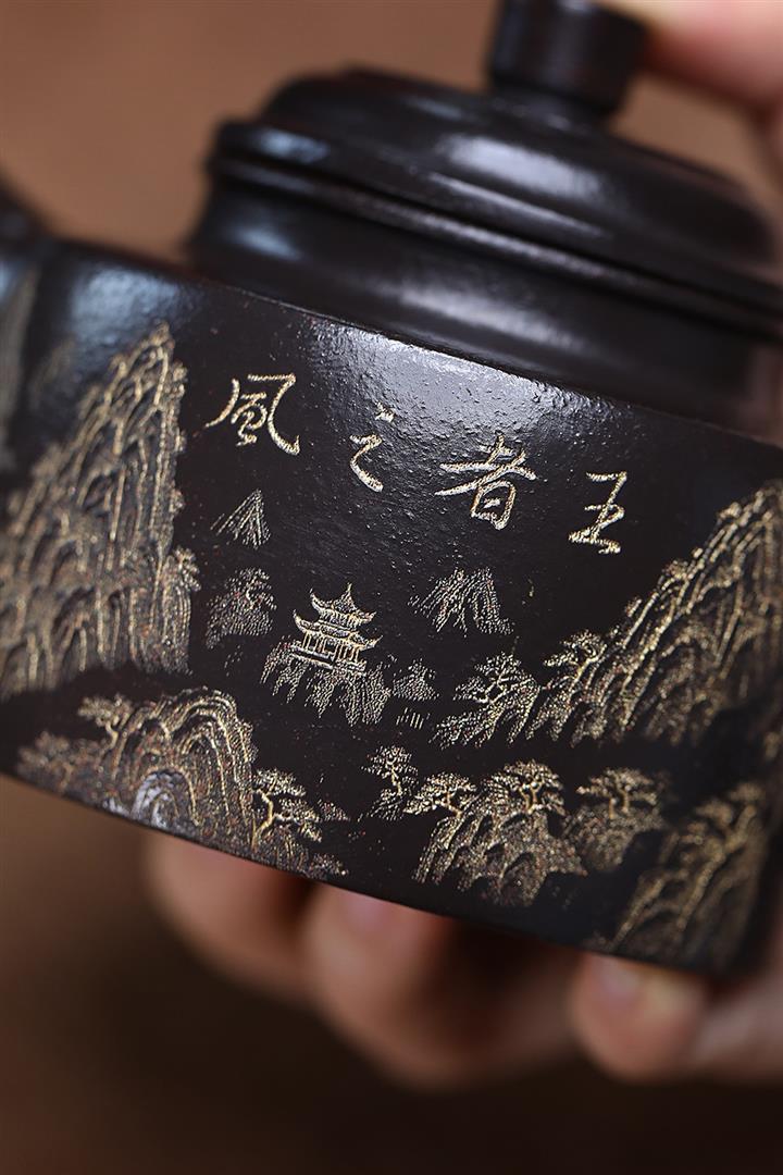 原礦黑泥刻繪鴻運當頭茶壺POT6954