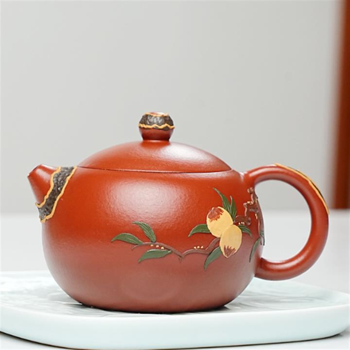 原礦大紅袍手工壽桃西施茶壺POT6958