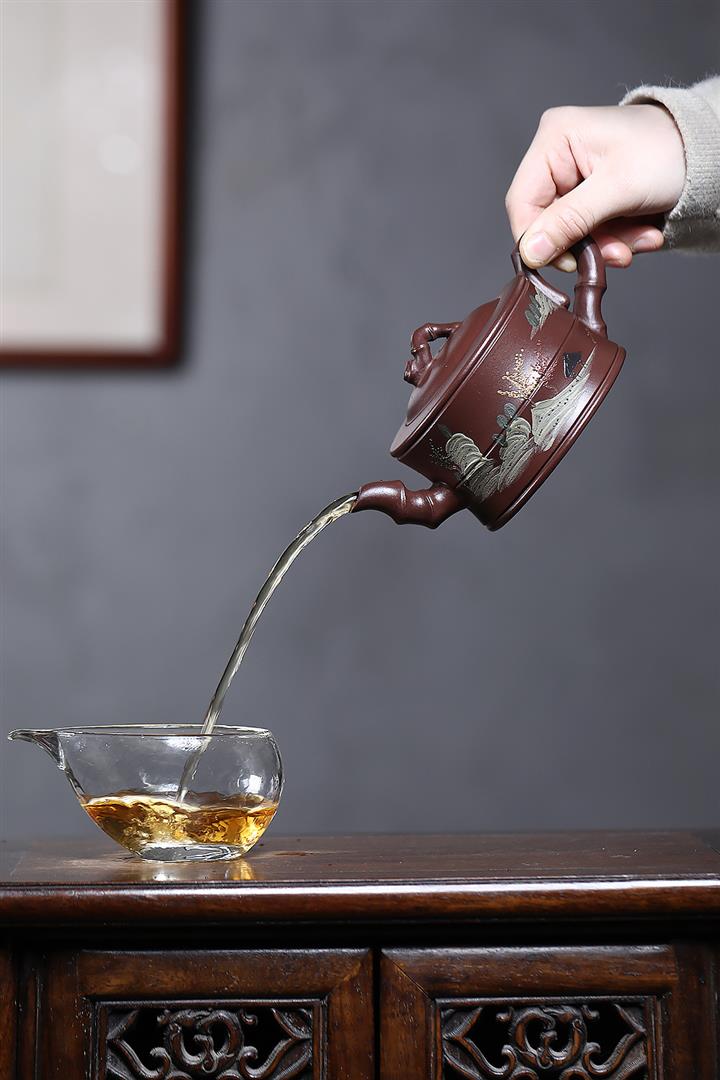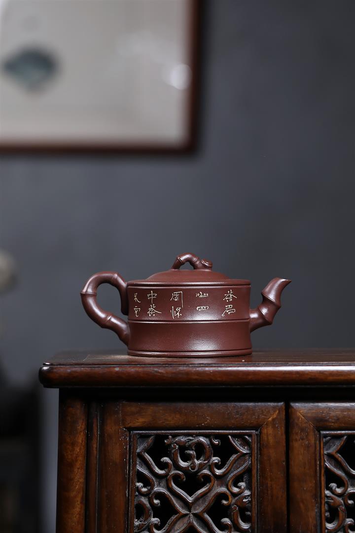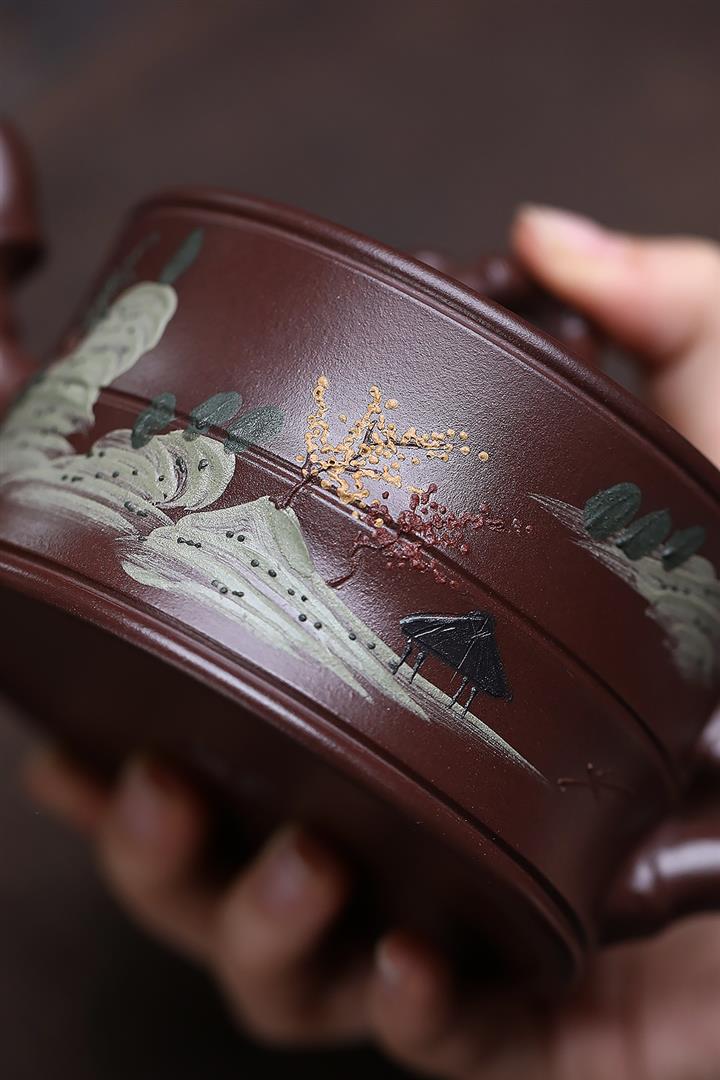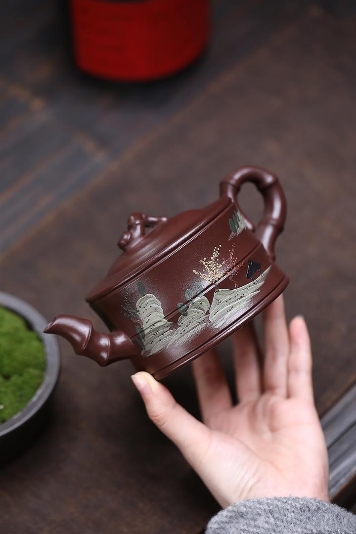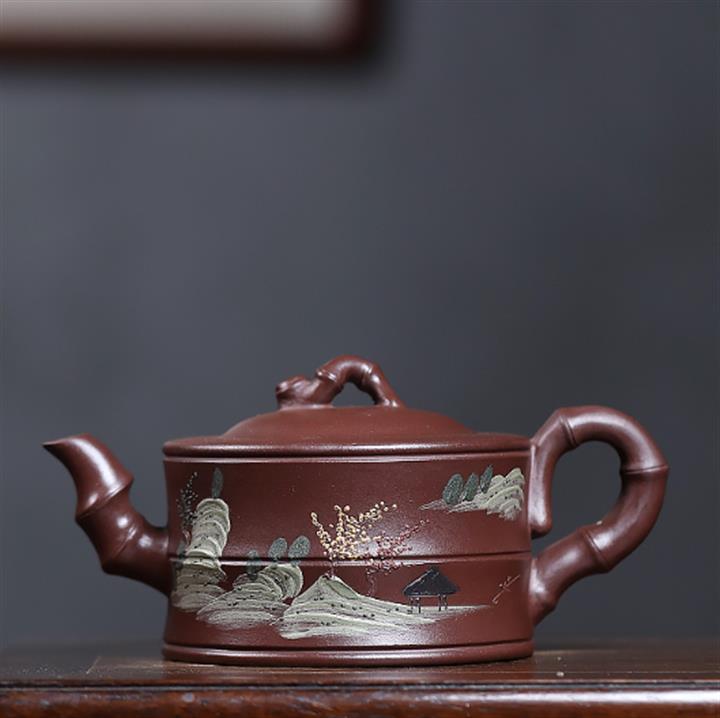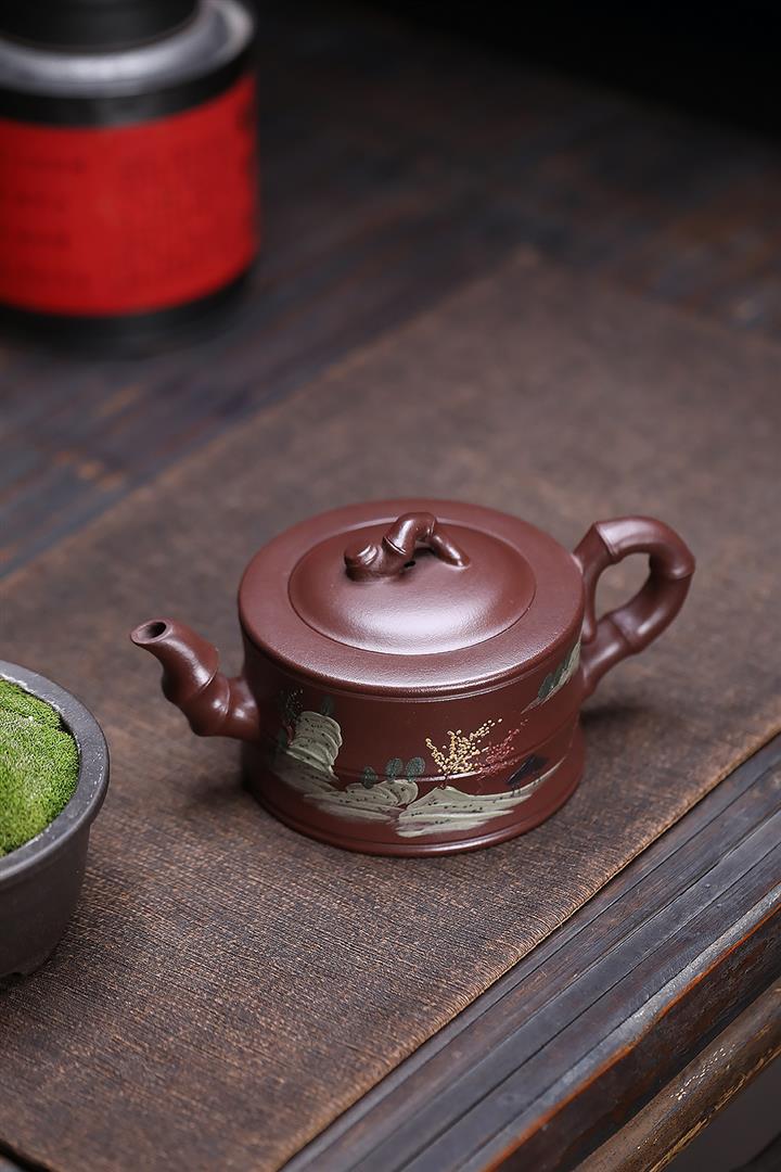 原礦紫泥彩繪山水竹段泡茶壺POT6950