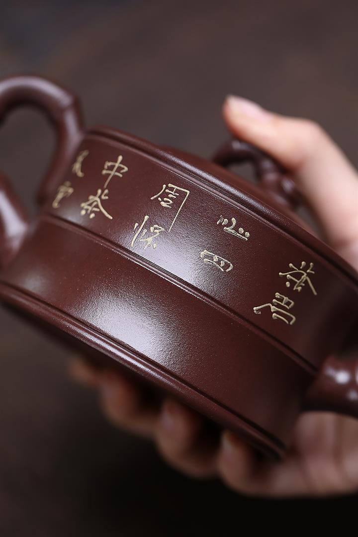原礦黑泥刻繪鴻運當頭茶壺POT6954