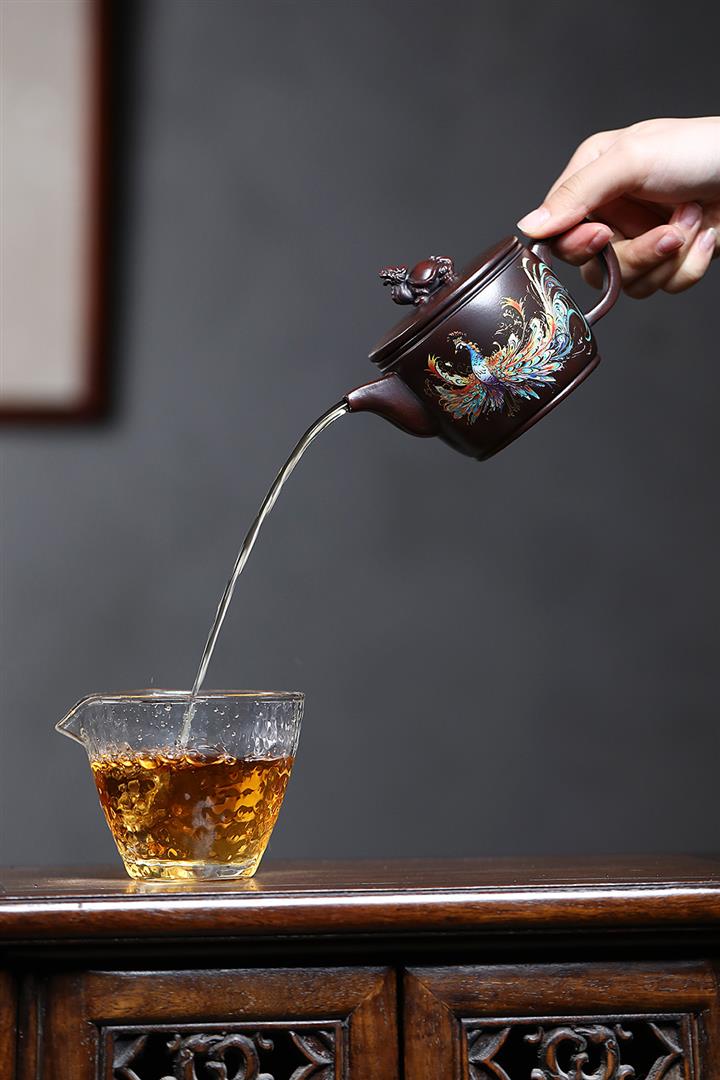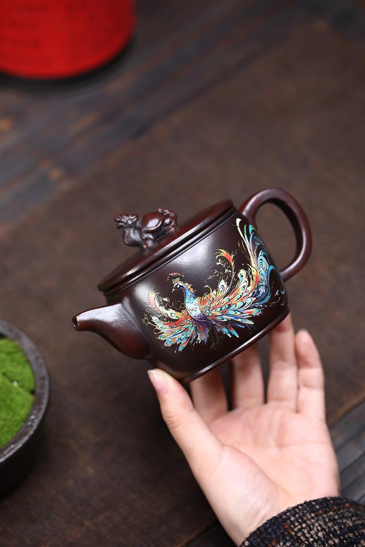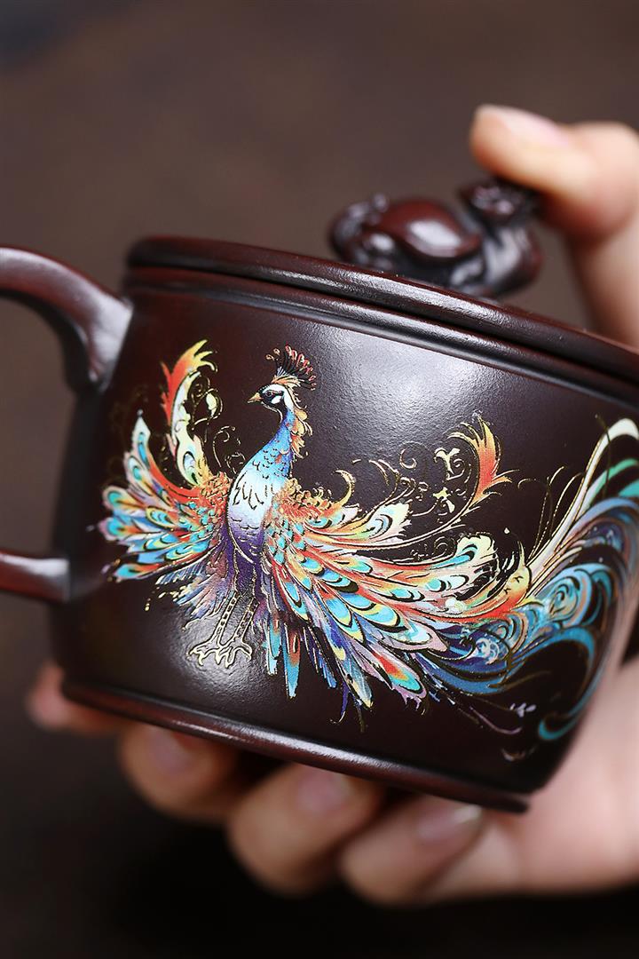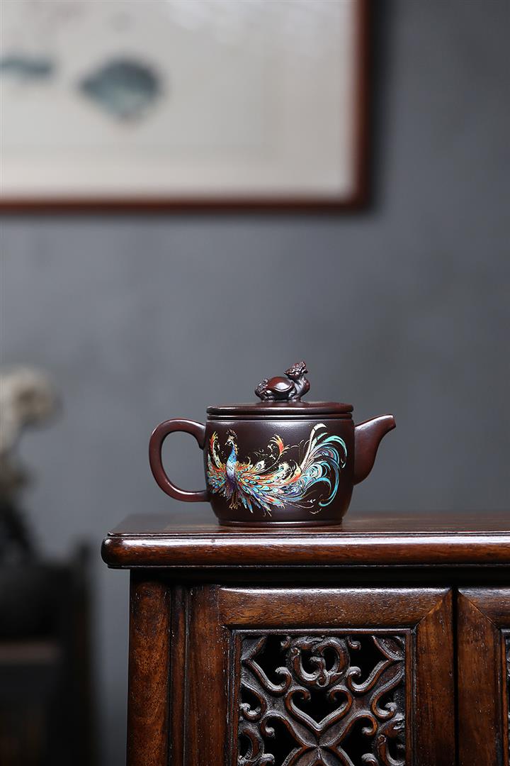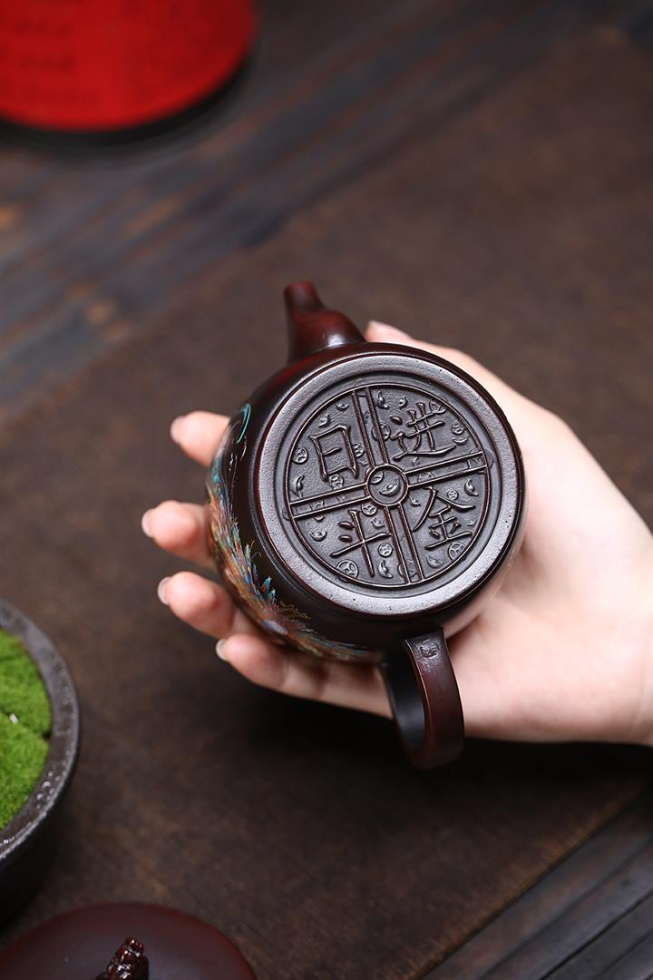 原礦革紫泥手工刻繪過橋容天茶壺POT6964