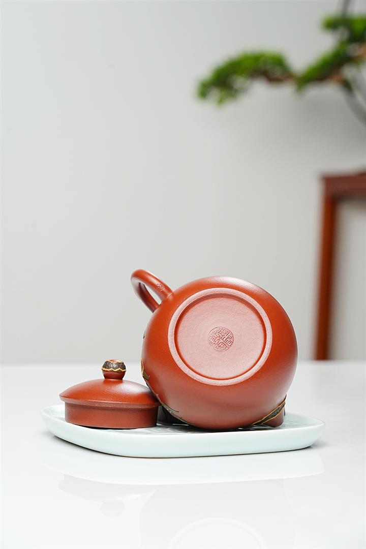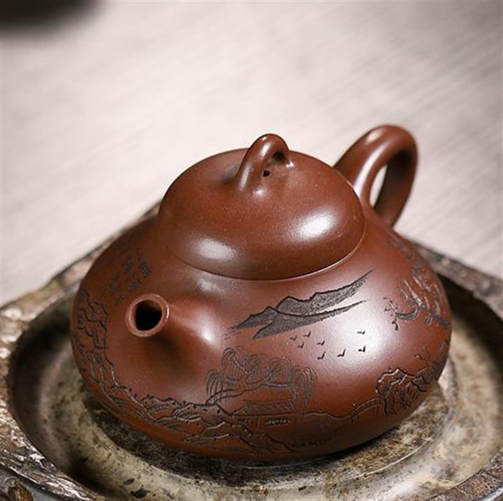 原礦革紫泥手工刻繪過橋容天茶壺POT6964