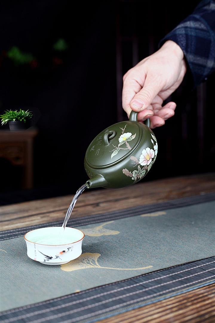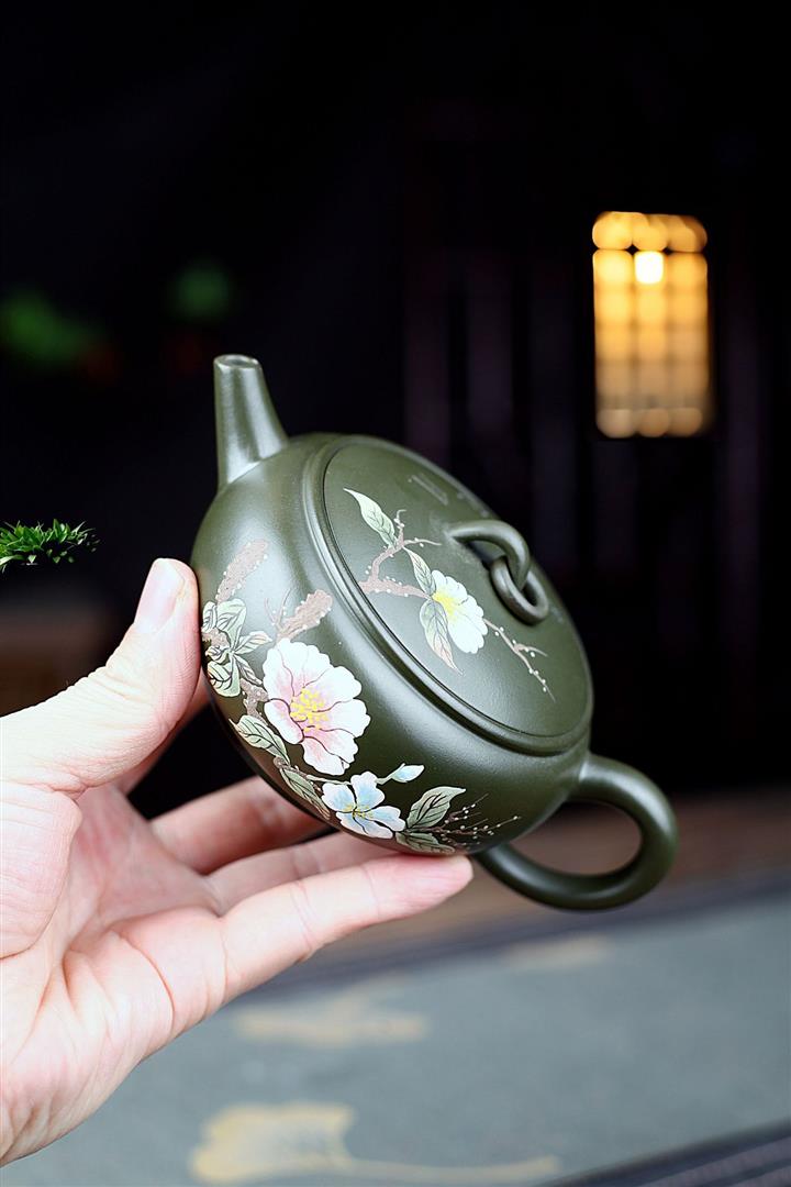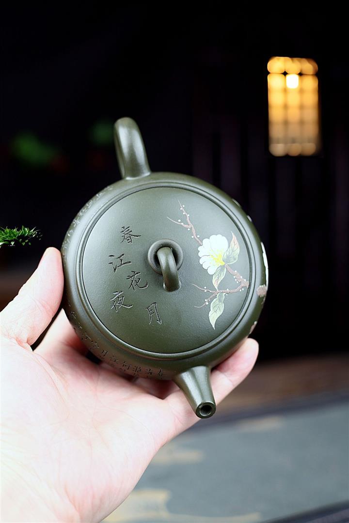 原礦革紫泥手工刻繪過橋容天茶壺POT6964