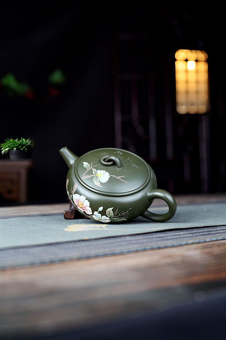 【泥料特點】透氣性好,光澤沈穩‌,日久使用,漸露鋒芒,養成變化甚大,溫潤莊重。線條優美自然嘴把搭配協調,身桶配上細長的把搭配,更顯優雅.