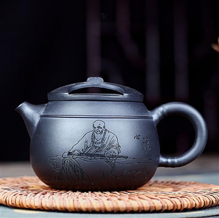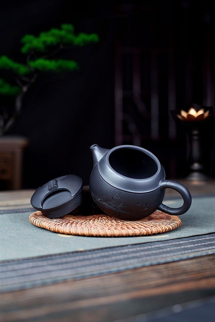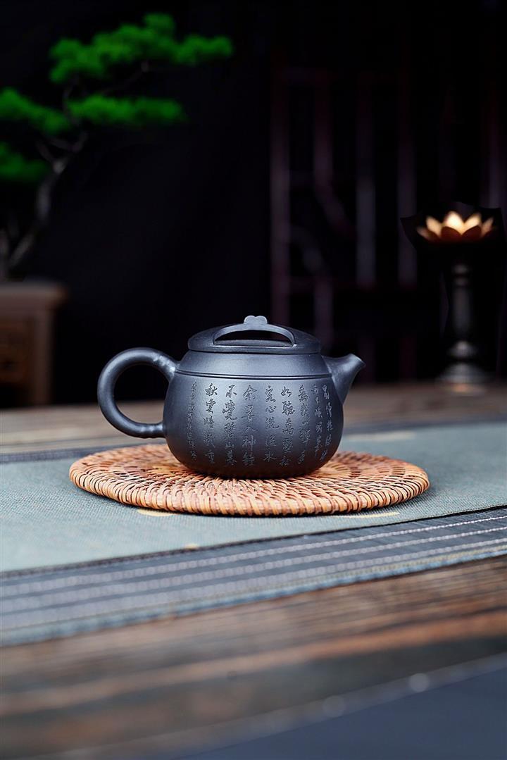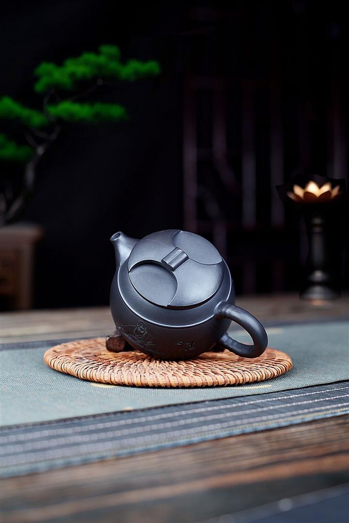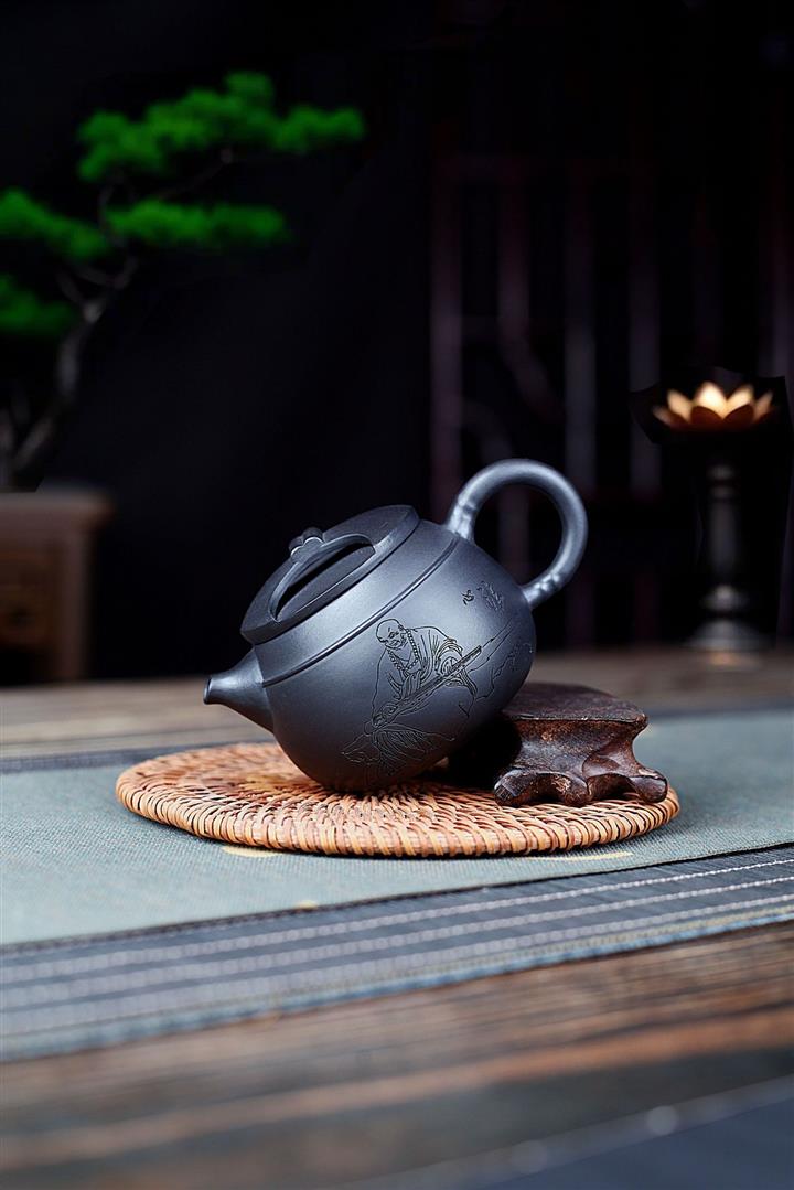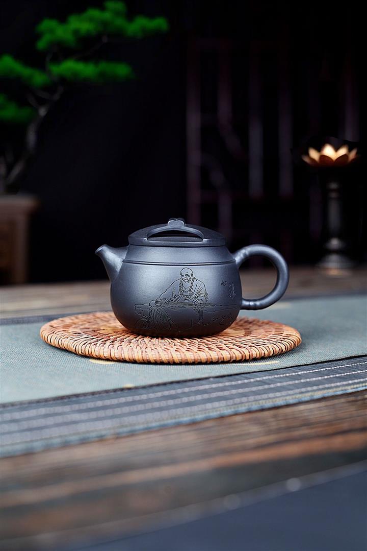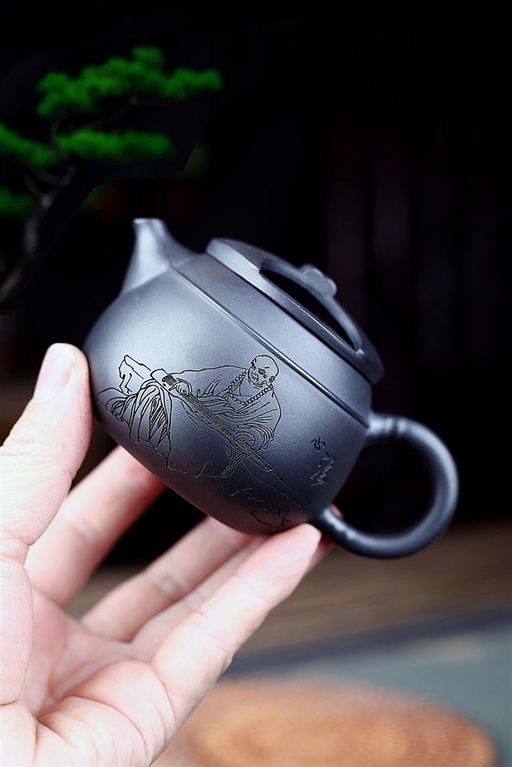 原礦革紫泥手工刻繪過橋容天茶壺POT6964