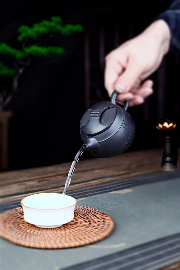 【泥料特點】透氣性好,光澤沈穩‌,日久使用,漸露鋒芒,養成變化甚大,溫潤莊重。線條優美自然嘴把搭配協調,身桶配上細長的把搭配,更顯優雅.
