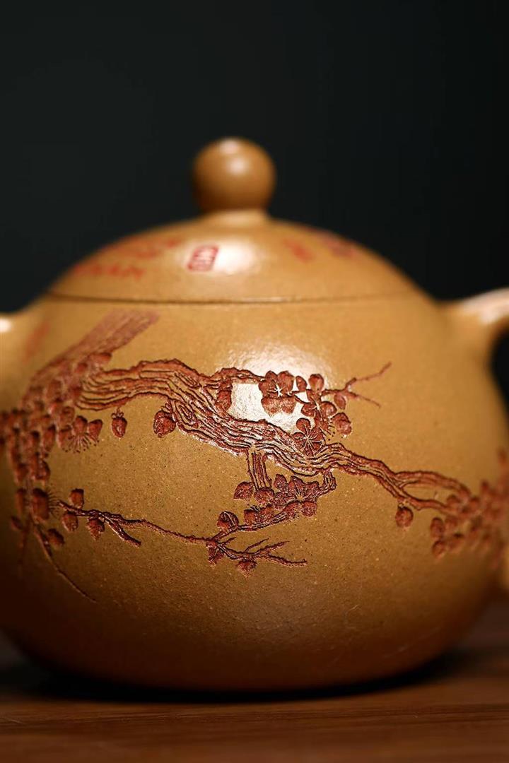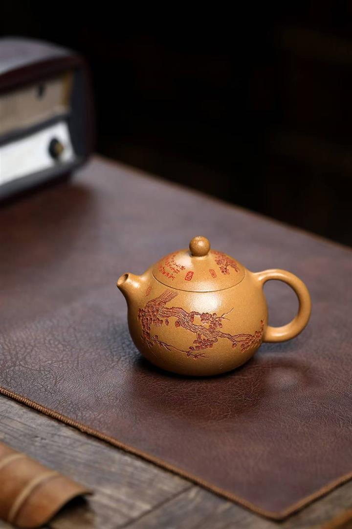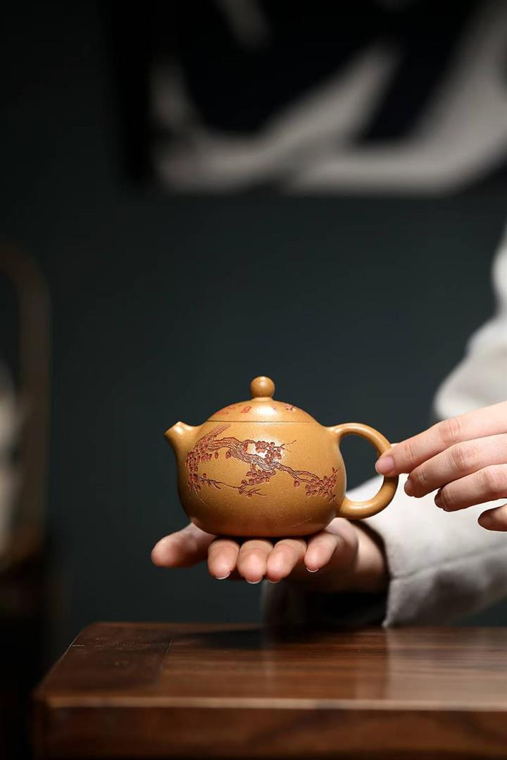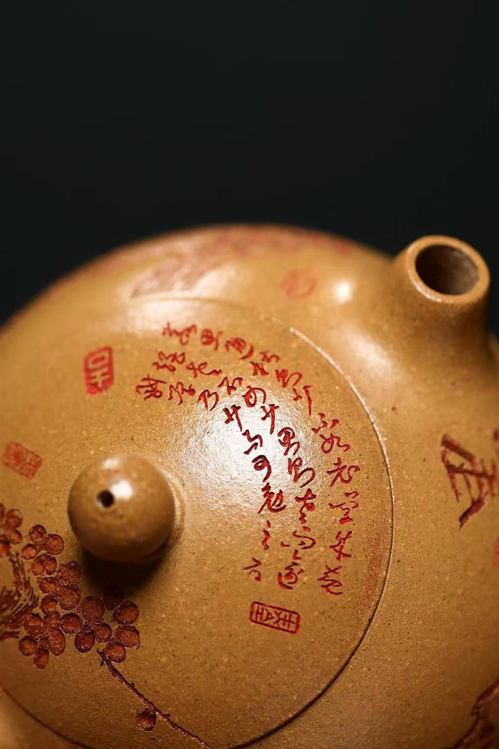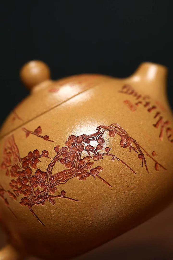 原礦米黃段泥手工刻墨香梅花乳香西施壺POT6966