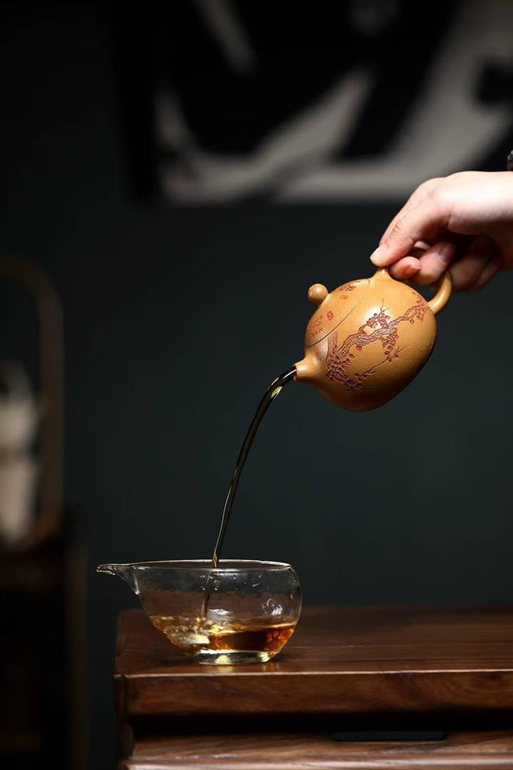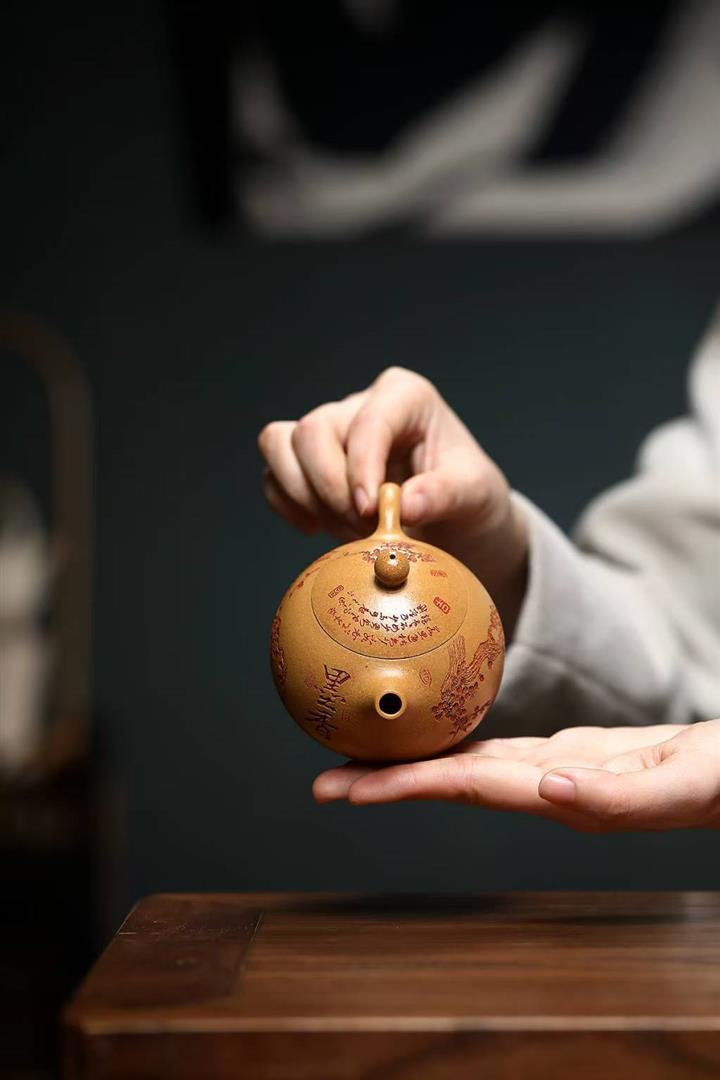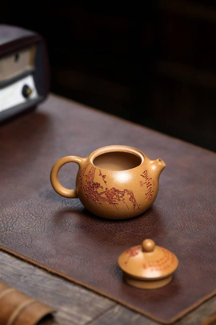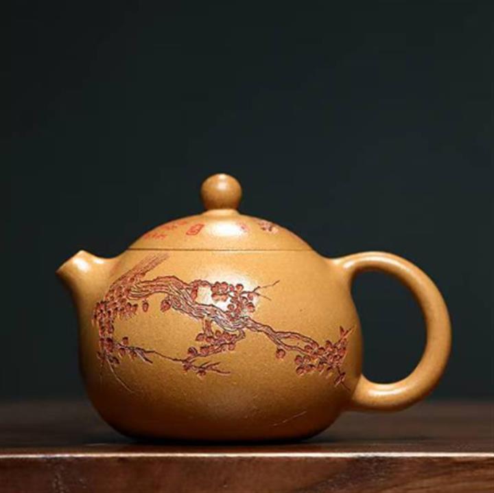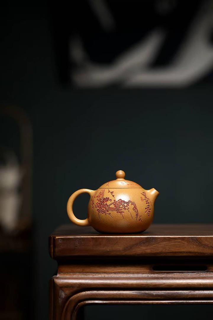 原礦米黃段泥手工刻墨香梅花乳香西施壺POT6966