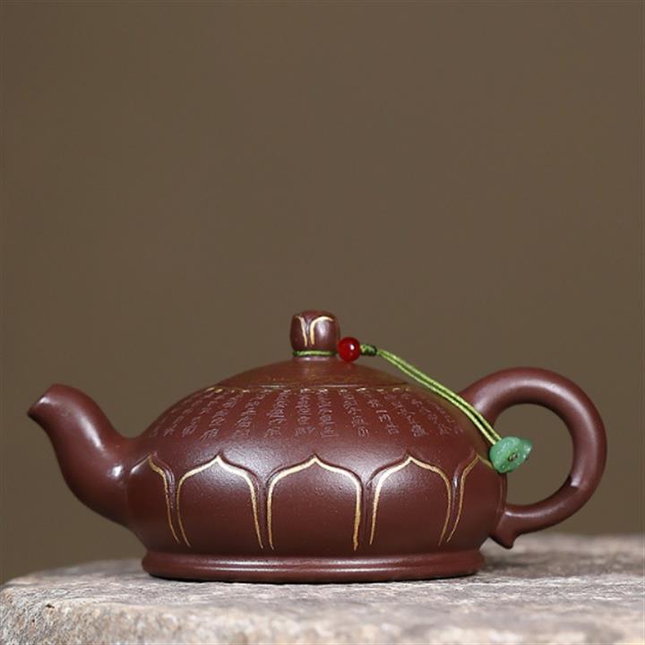原礦陳腐老紫泥刻繪描金佛蓮茶壺POT6976