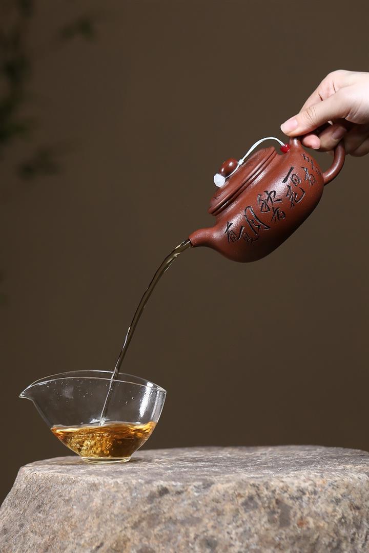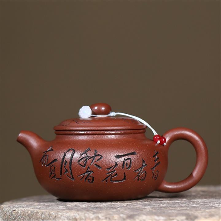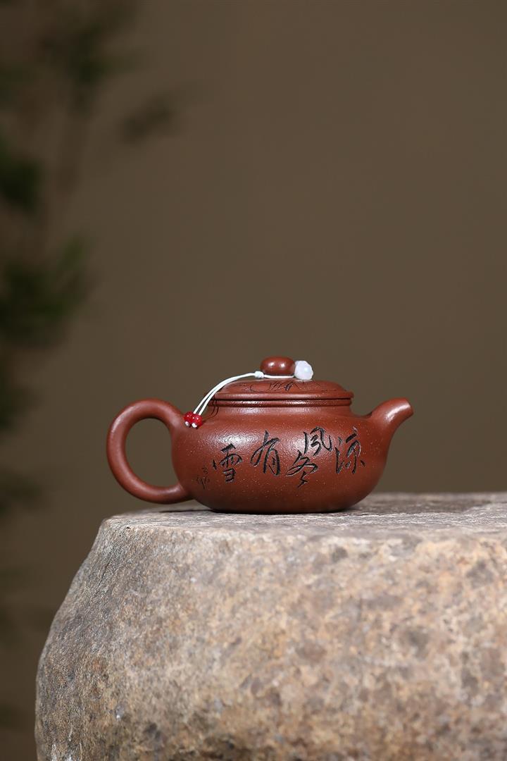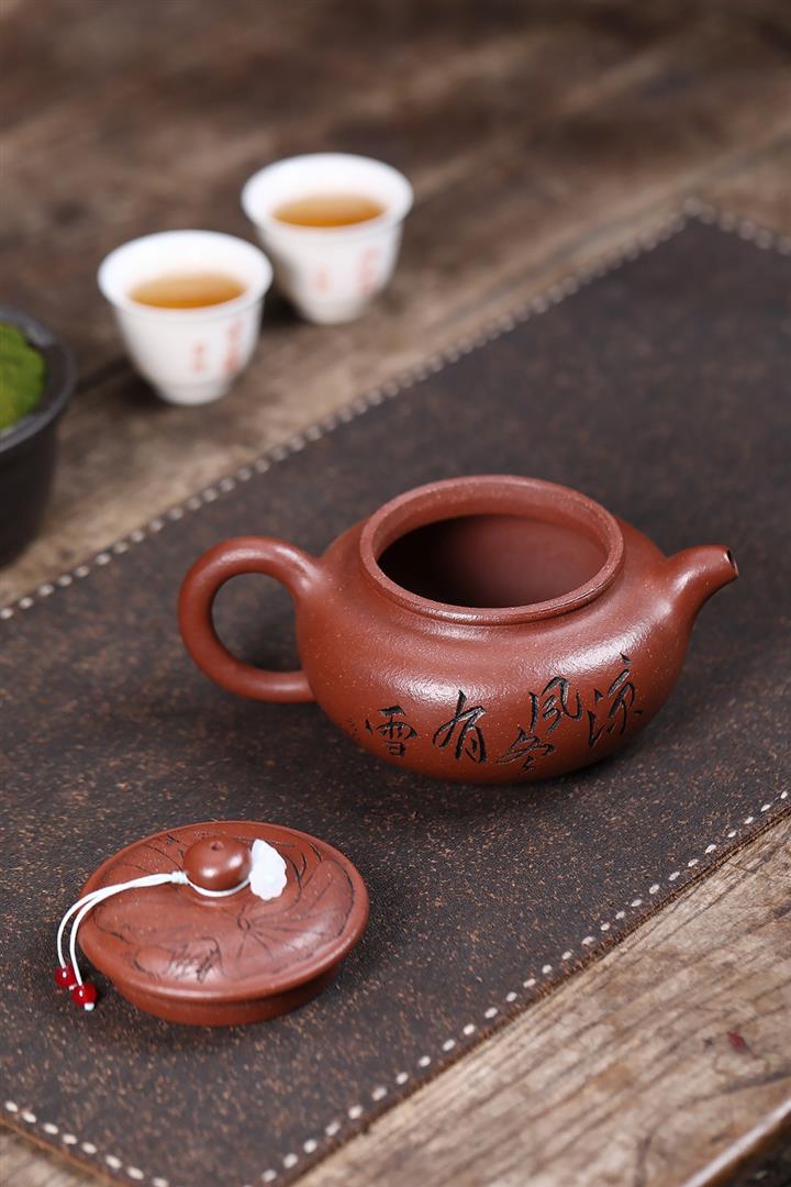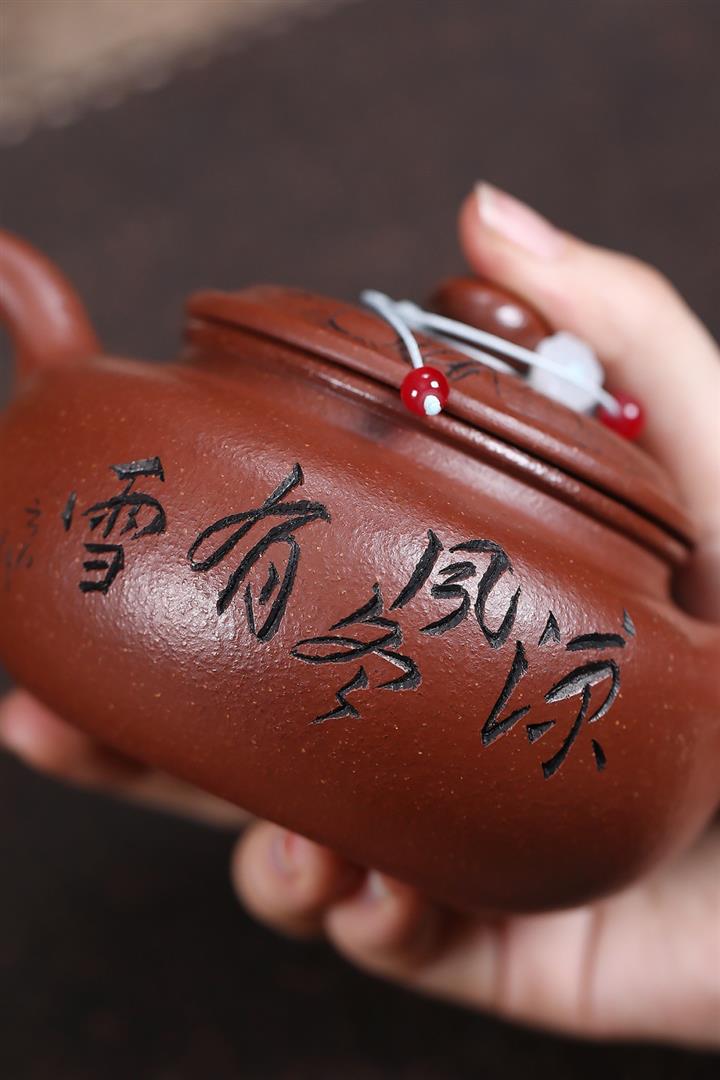 原礦石黃泥刻繪牡丹金鐘茶壺POT6993