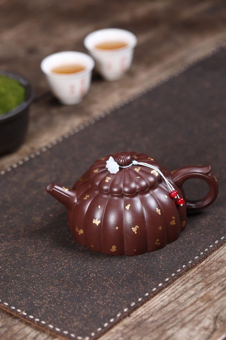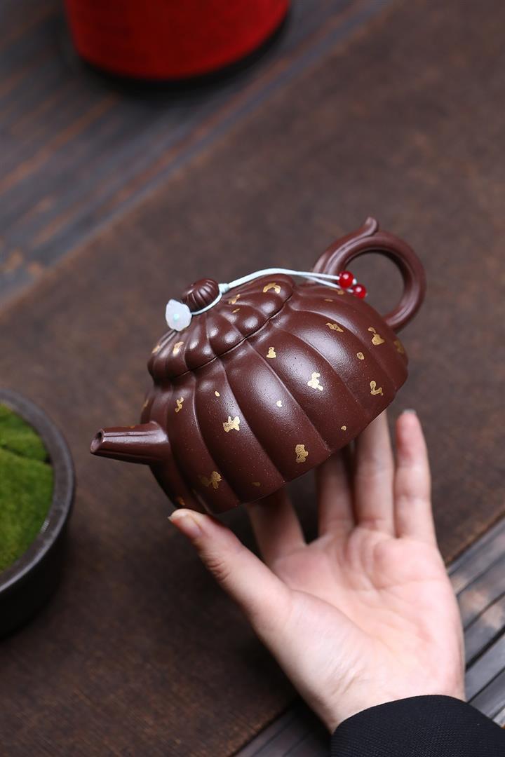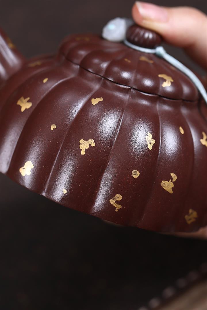原礦陳腐老紫泥刻繪描金佛蓮茶壺POT6976