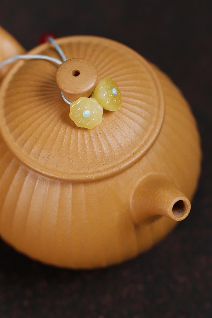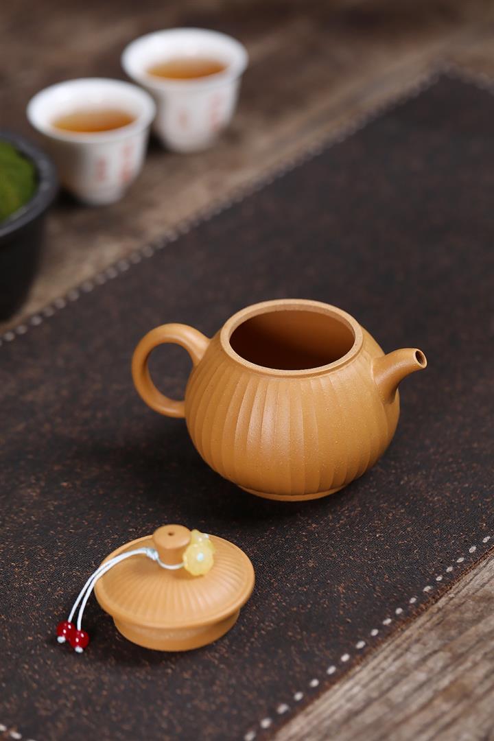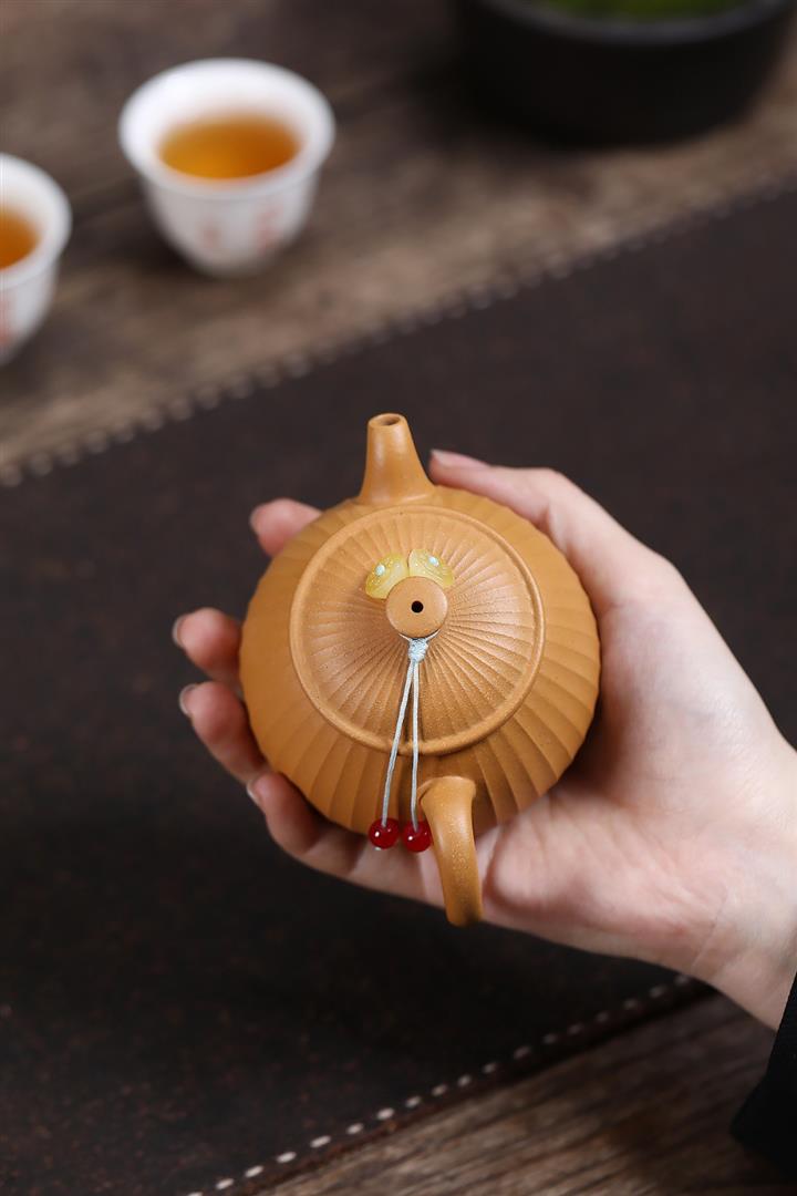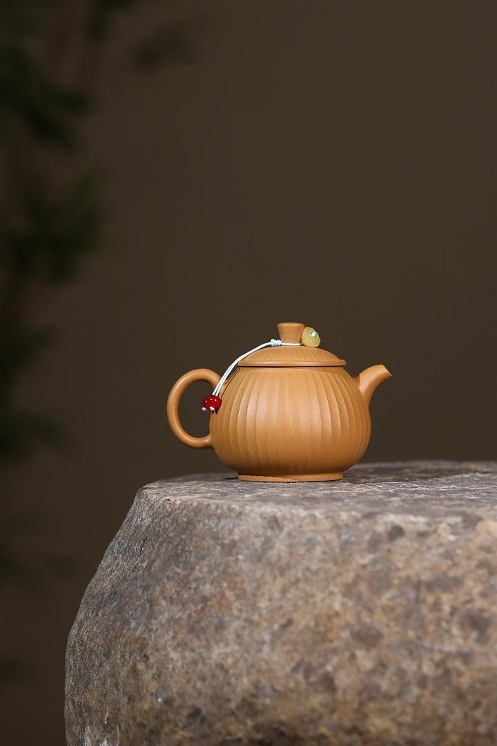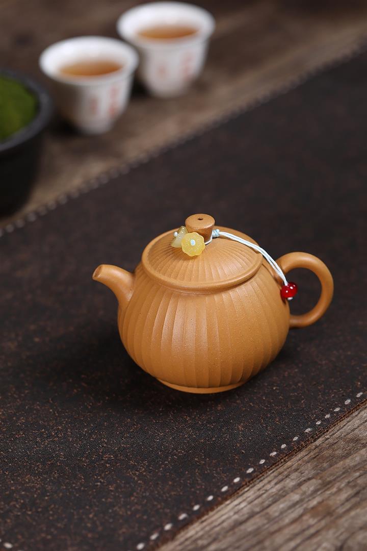 原礦石黃刻繪觀山汲直茶壺POT6981