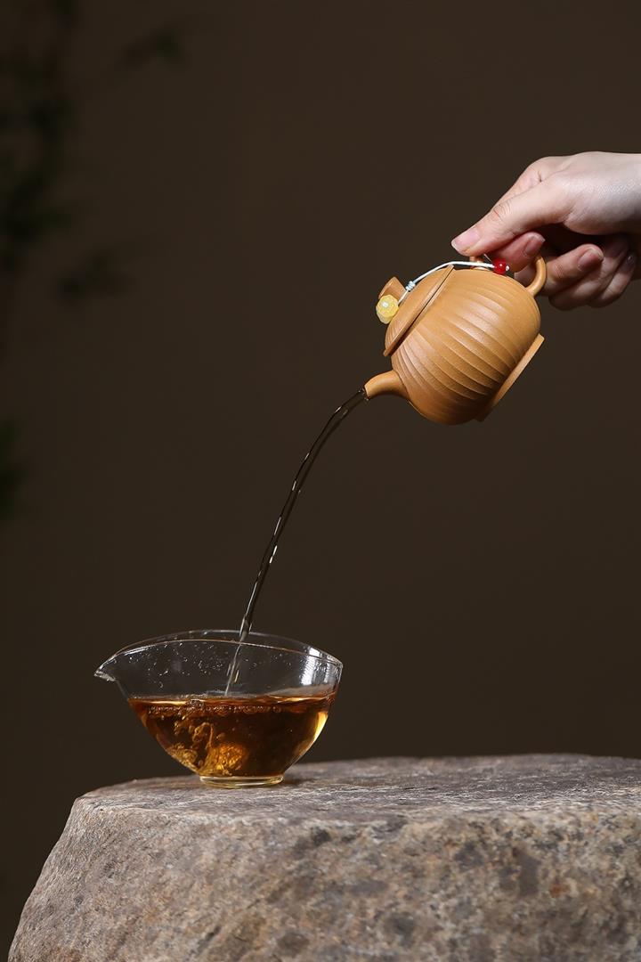 【泥料特點】砂土氣重,似淳實農民,日久使用,漸露鋒芒,養成變化甚大,溫潤莊重。線條優美自然,嘴把搭配協調,身桶配上細長的把搭配,更顯優生動……