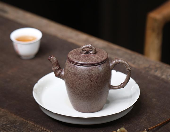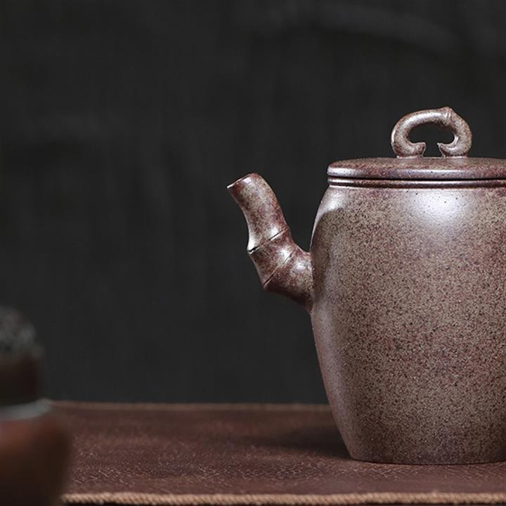 【泥料特點】砂土氣重,似淳實農民,日久使用,漸露鋒芒,養成變化甚大,溫潤莊重。線條優美自然,嘴把搭配協調,身桶配上細長的把搭配,更顯優生動……