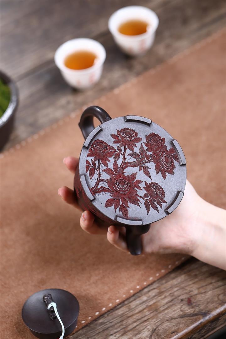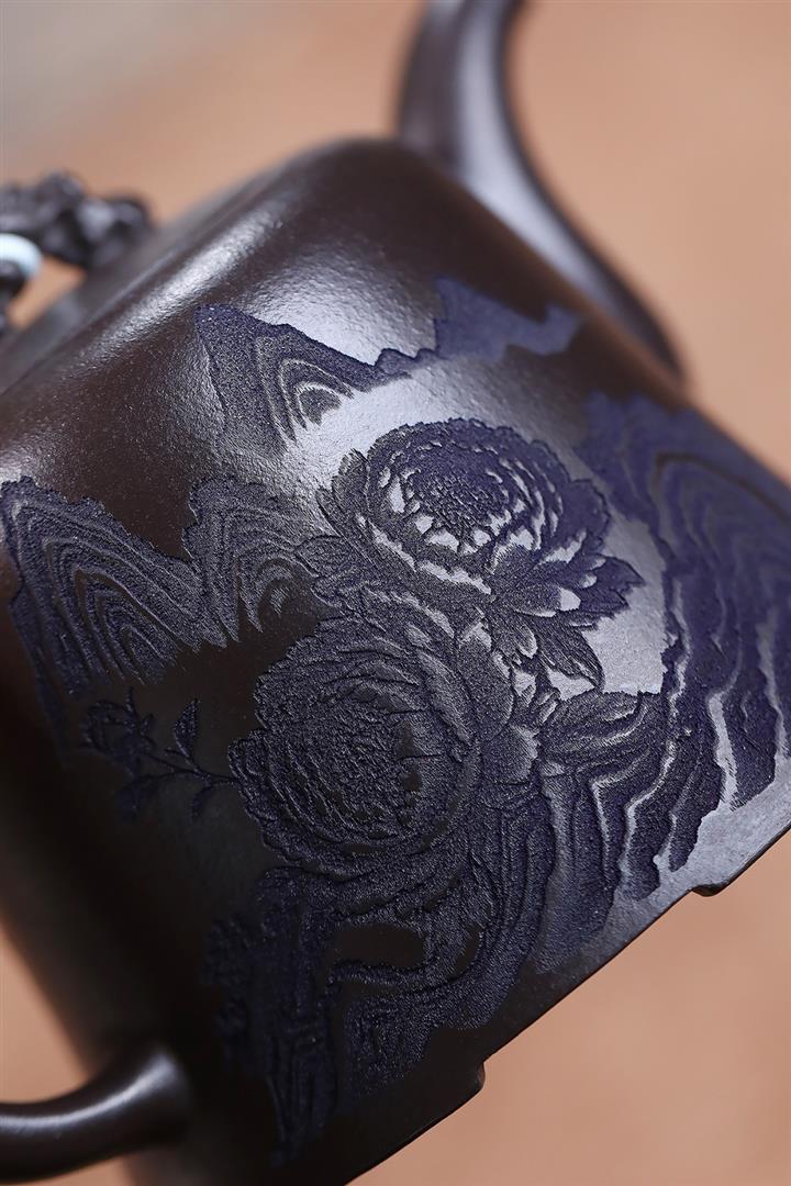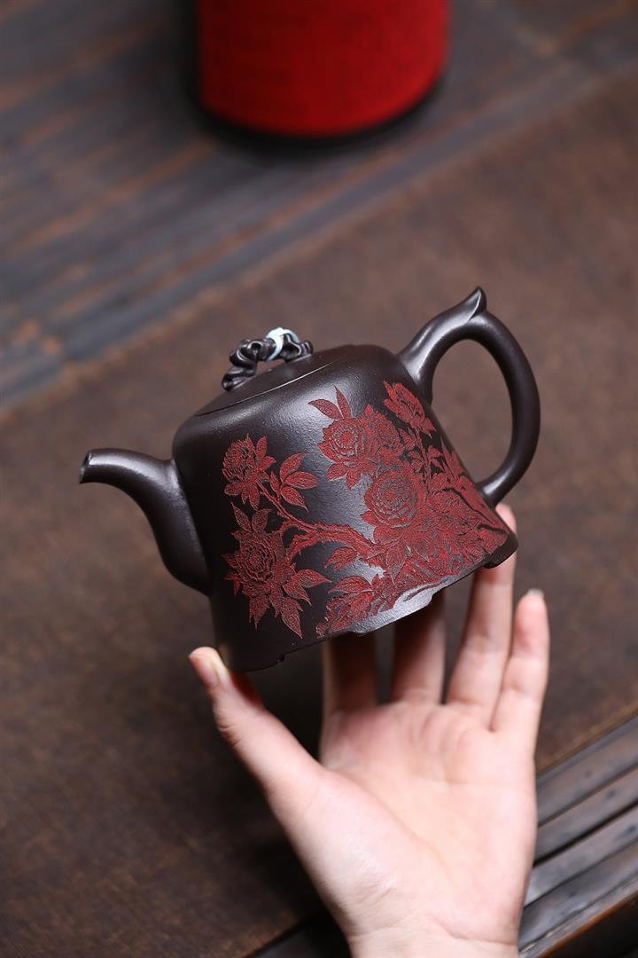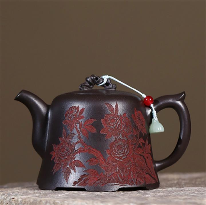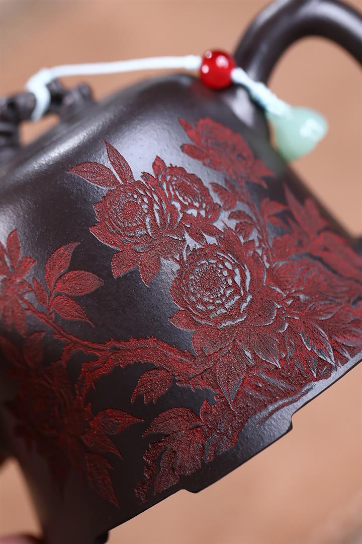 原礦石黃泥刻繪牡丹金鐘茶壺POT6993