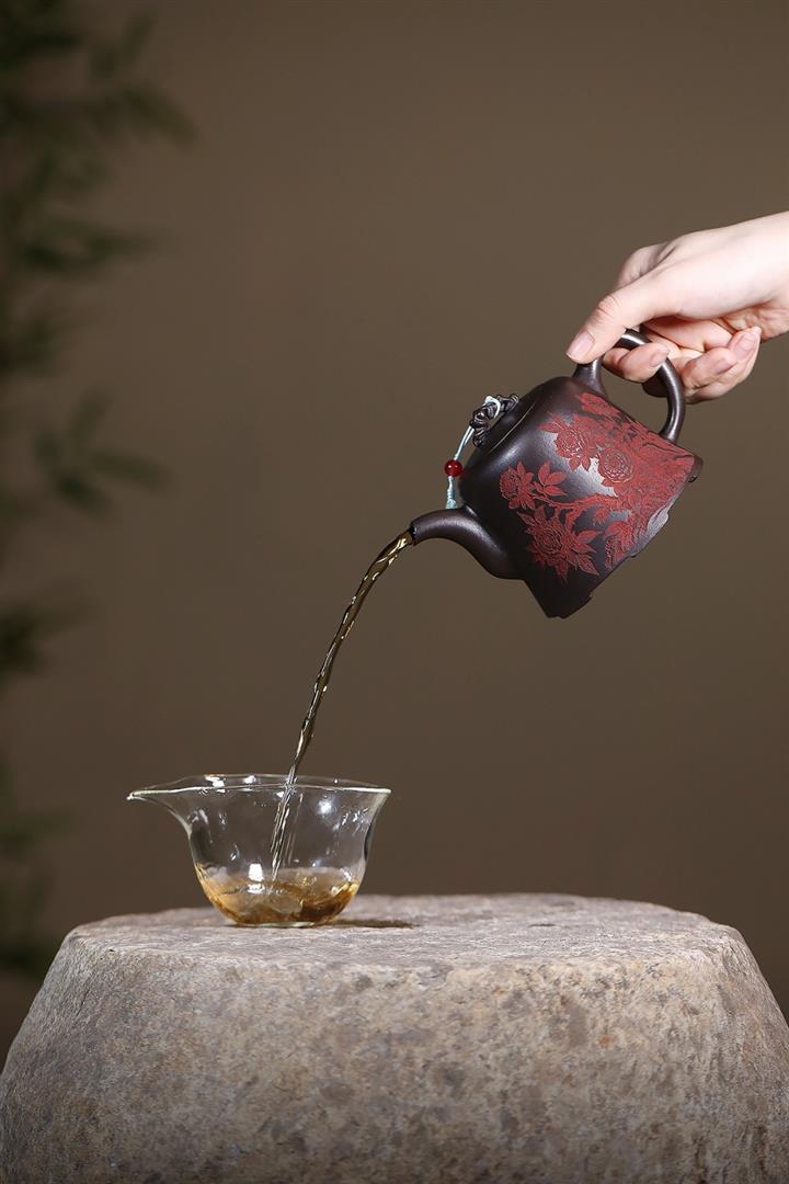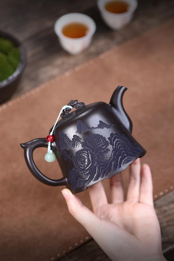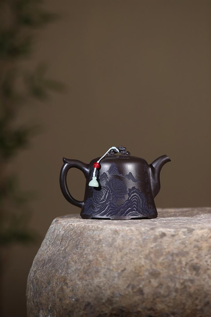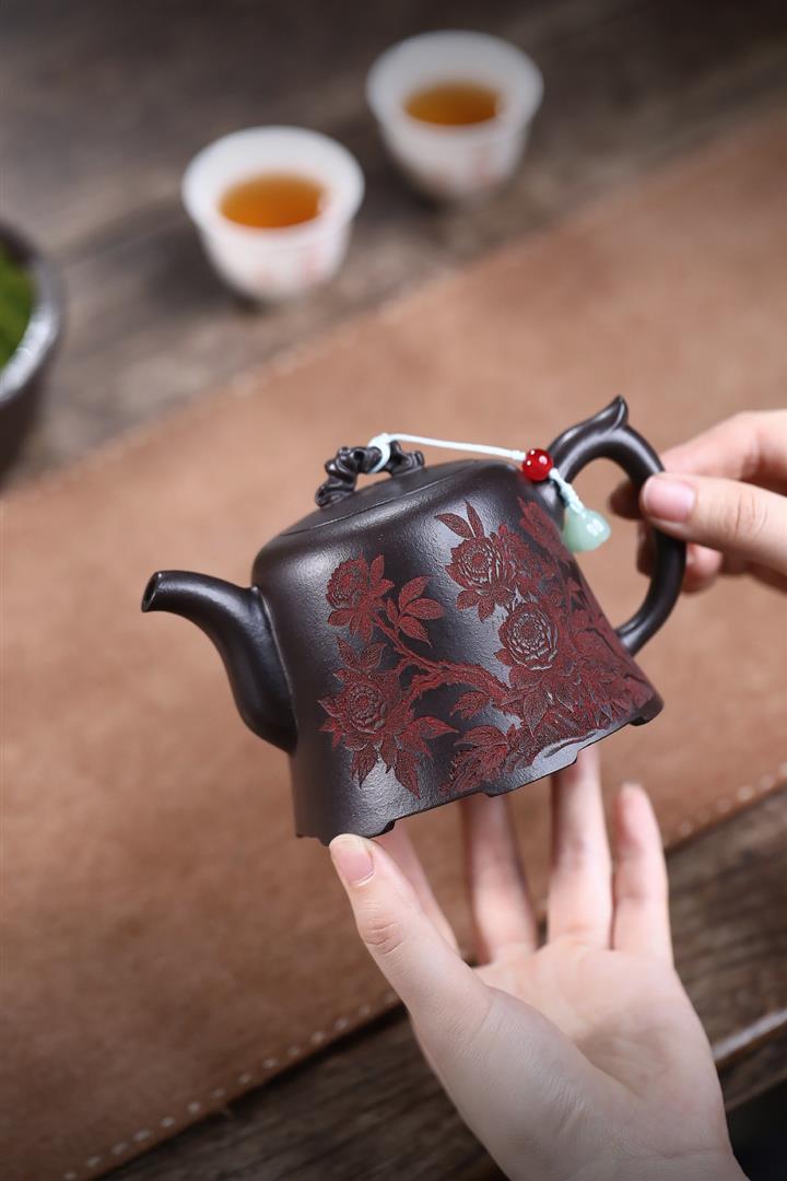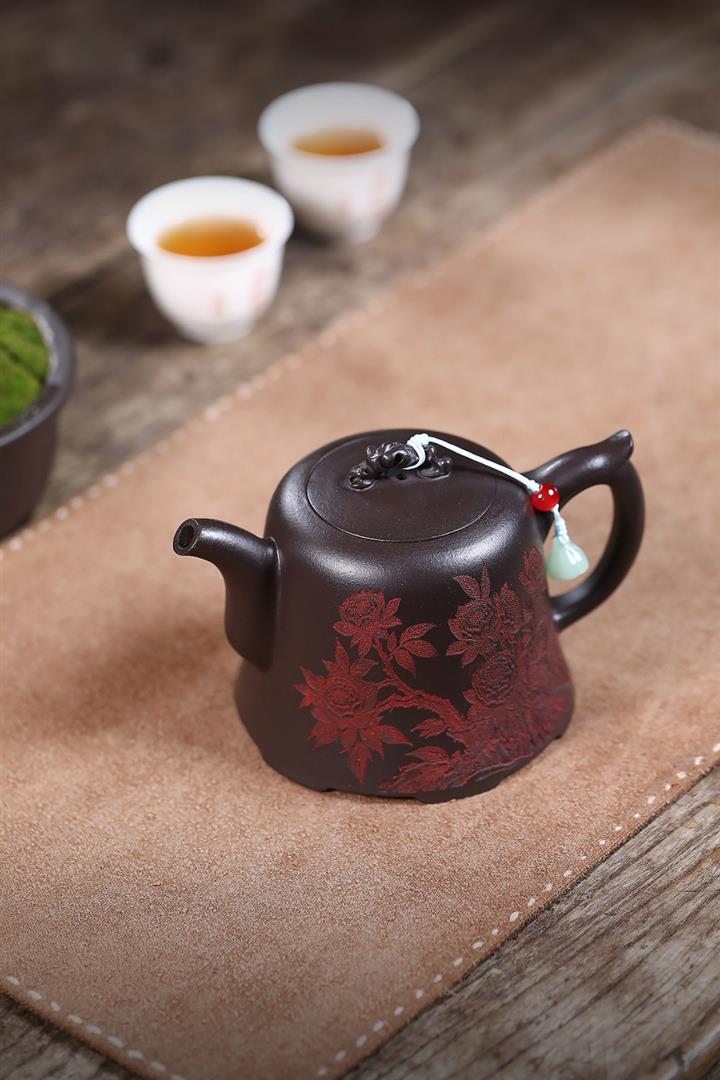 原礦石黃泥刻繪牡丹金鐘茶壺POT6993