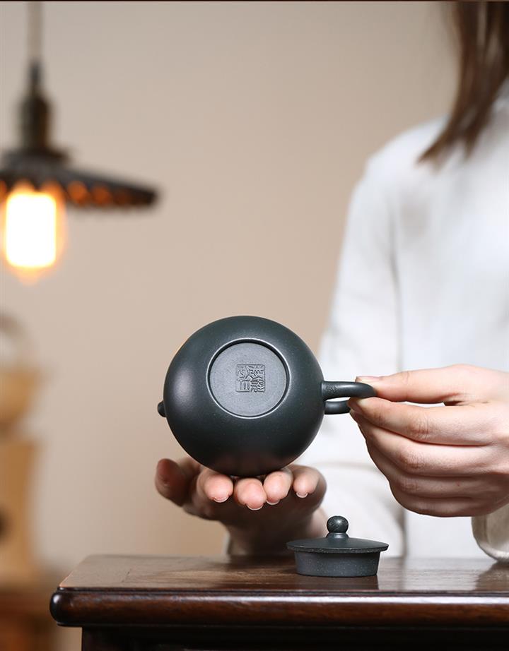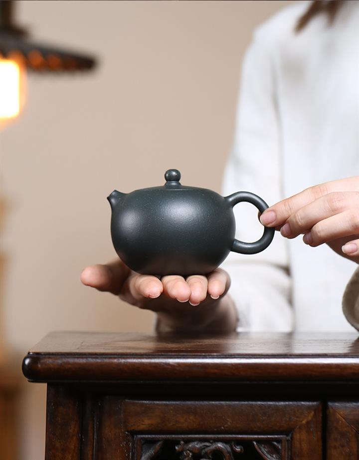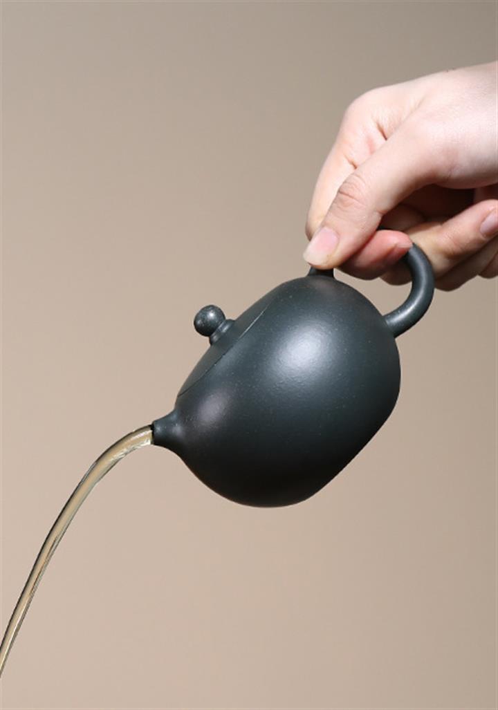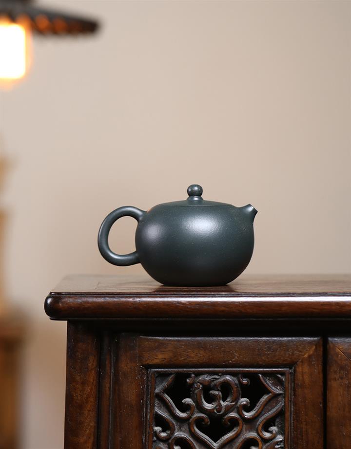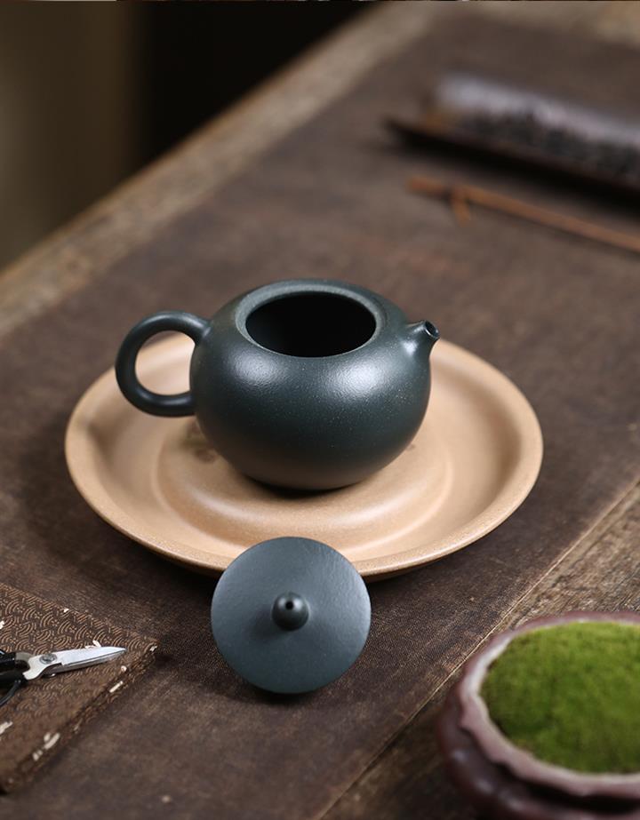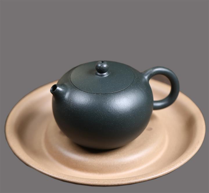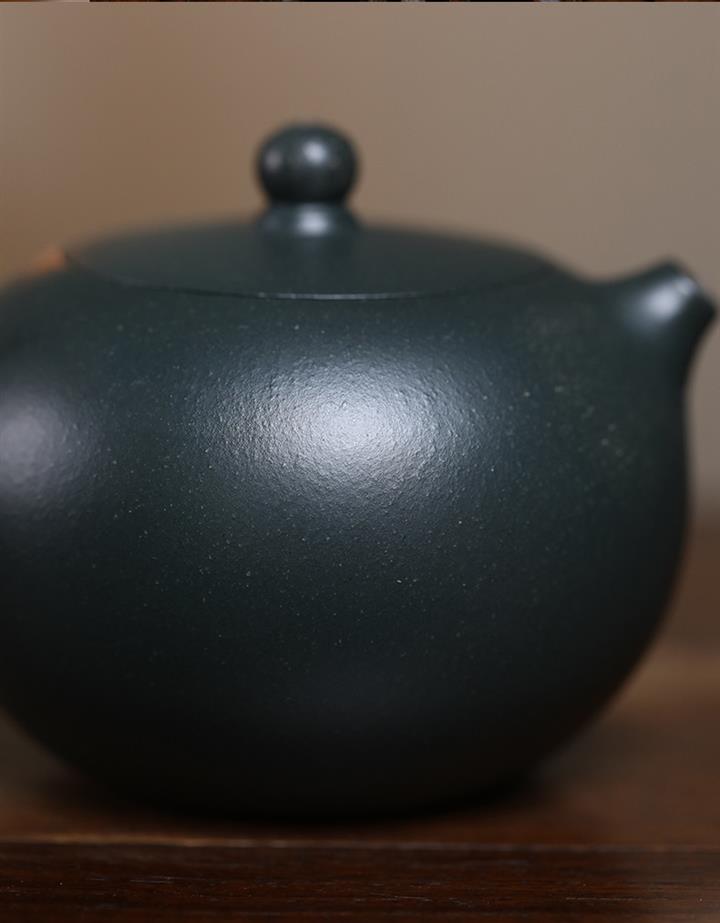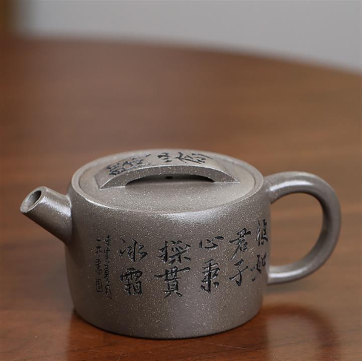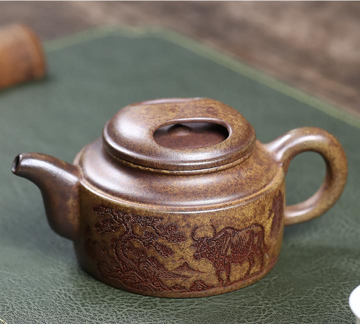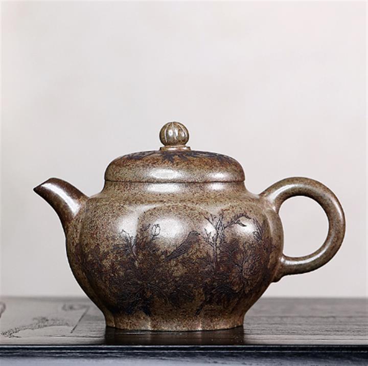 原礦墨綠泥手工滿刻觀山洋桶茶壺POT7107