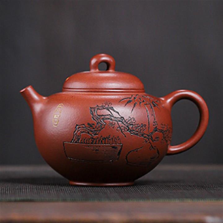 原礦百目紫泥手工描金明爐茶壺POT7073