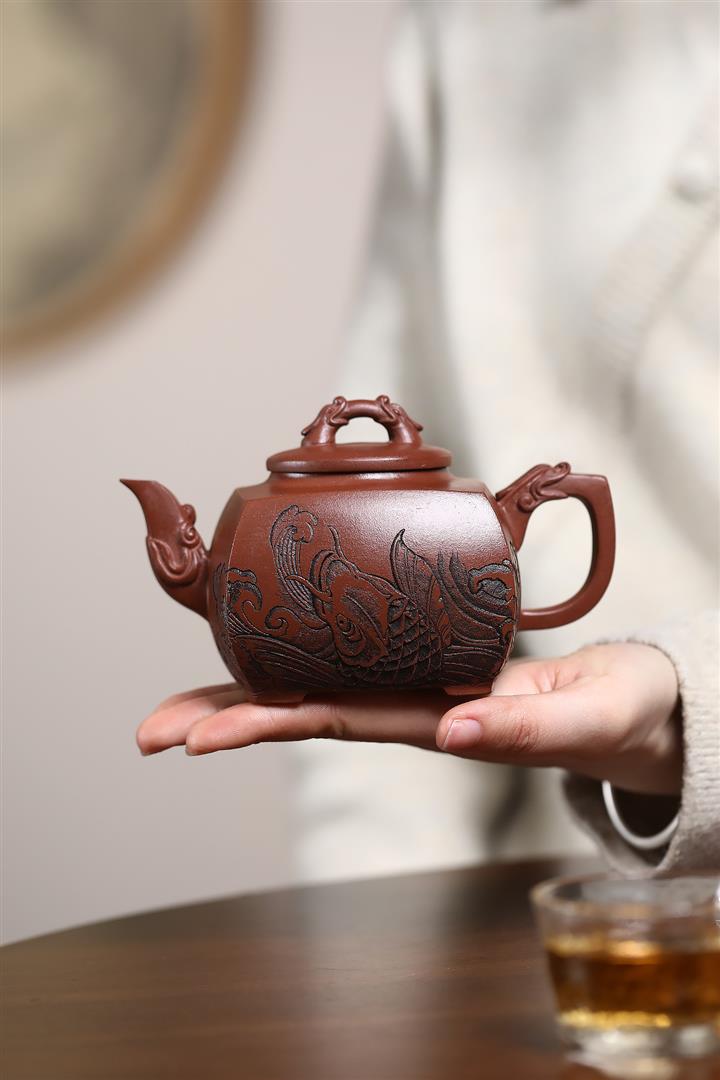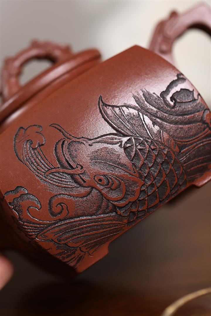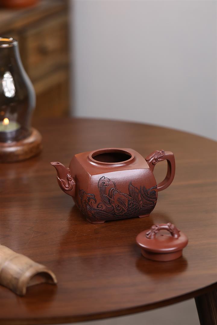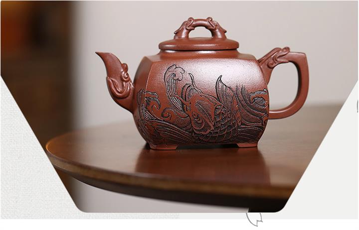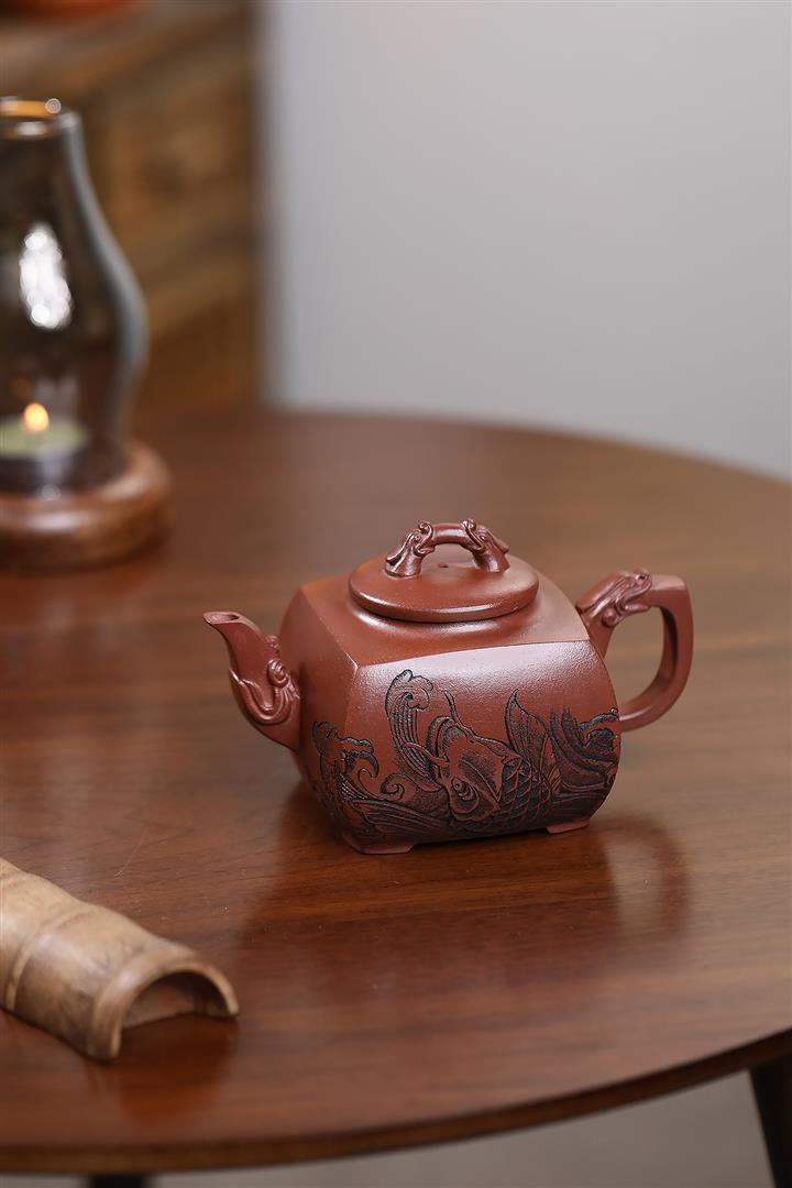 原礦清水泥魚躍龍門四方集玉茶壺POT7002