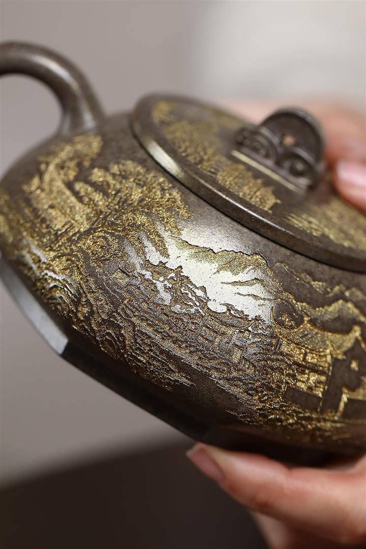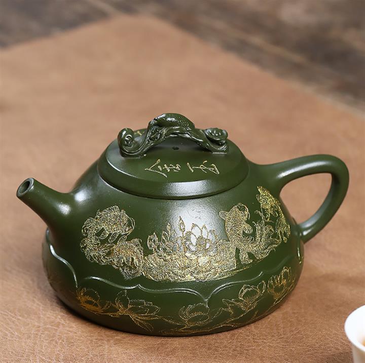 原礦翡翠綠泥金玉滿堂茶壺POT7019