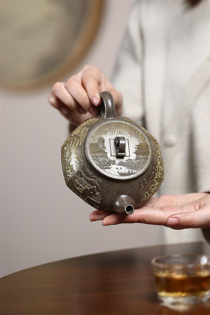 原礦黃金段泥純手工 菱香茶壺POT7010