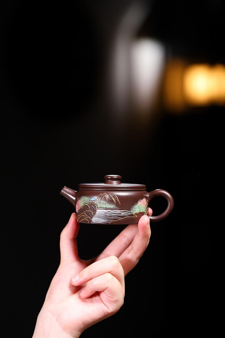 原礦百目紫泥手工描金明爐茶壺POT7073