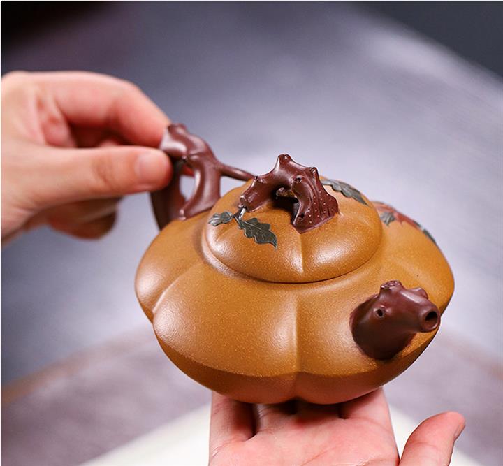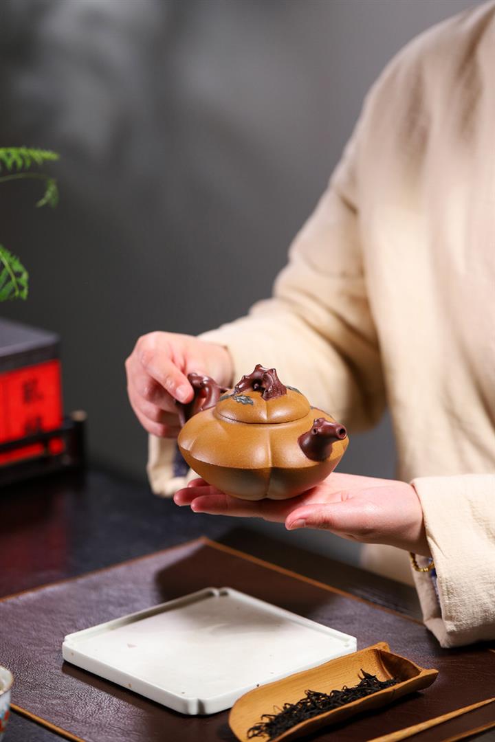 原礦黃金段泥純手工 菱香茶壺POT7010
