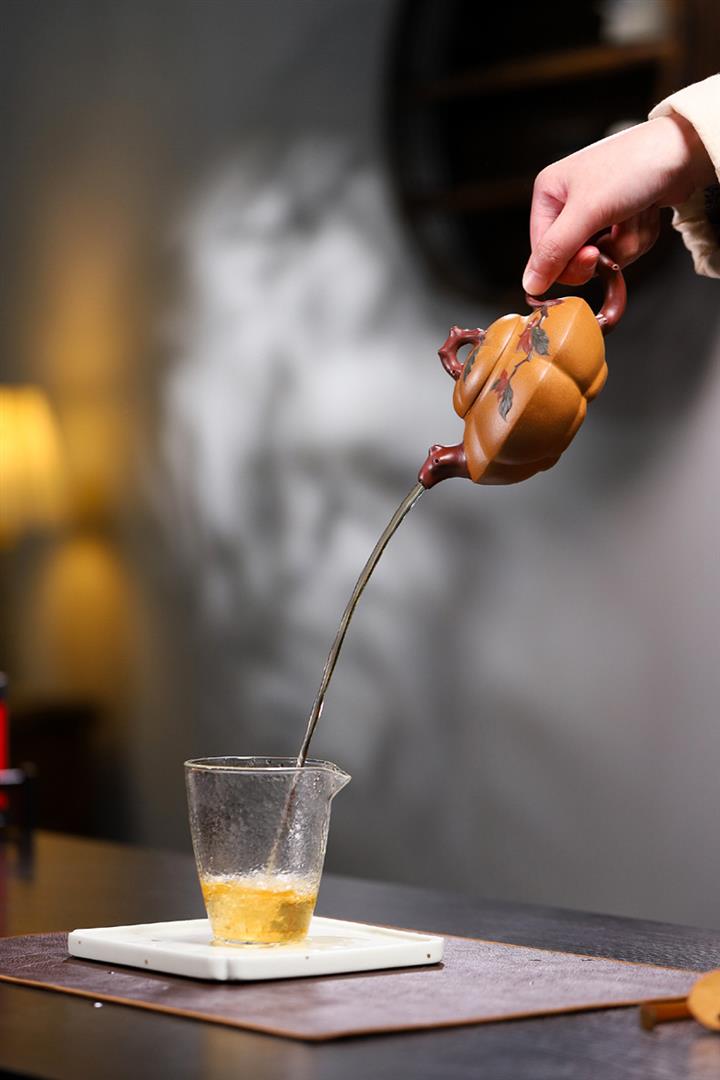 【泥料特點】砂土氣重,似淳實農民,日久使用,漸露鋒芒,養成變化甚大,溫潤莊重。線條優美自然,嘴把搭配協調,身桶配上細長的把搭配,更顯優雅