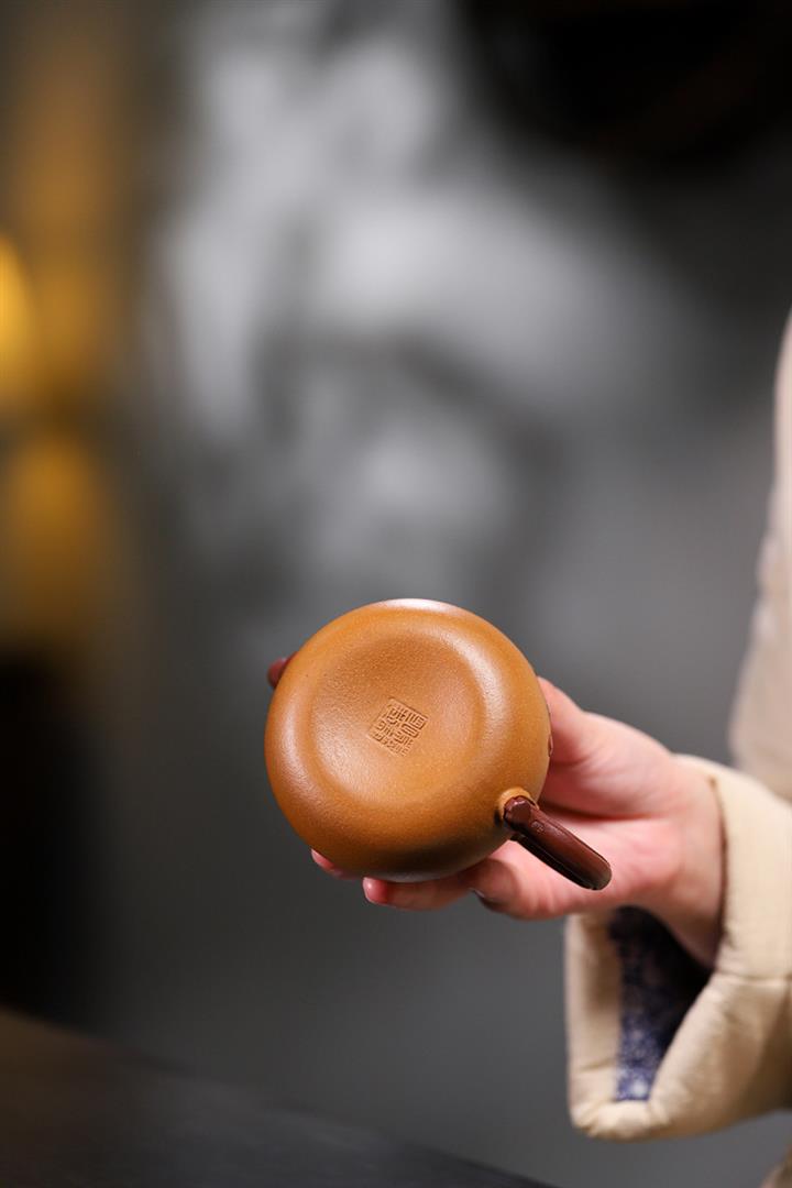 【泥料特點】砂土氣重,似淳實農民,日久使用,漸露鋒芒,養成變化甚大,溫潤莊重。線條優美自然,嘴把搭配協調,身桶配上細長的把搭配,更顯優雅
