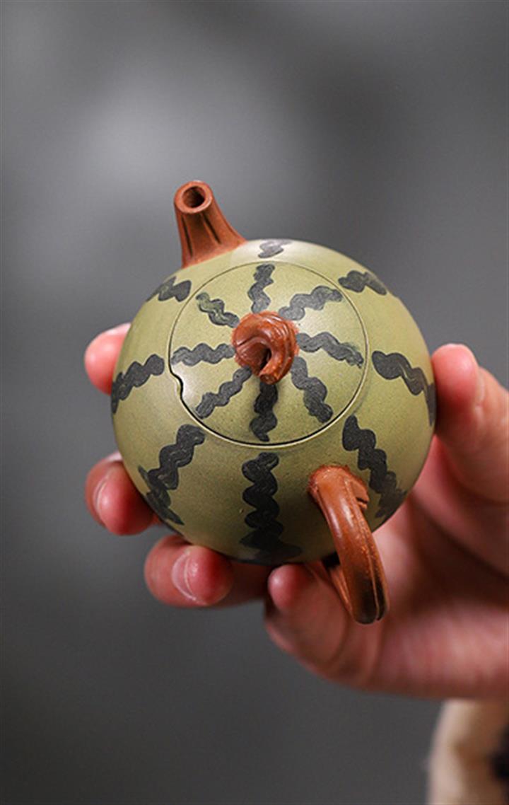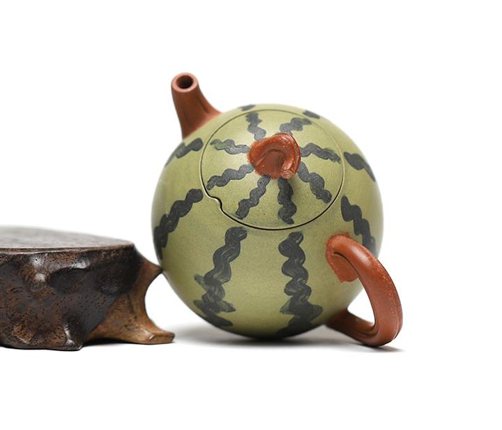 原礦綠泥手工制仿生西瓜茶壺POT7012