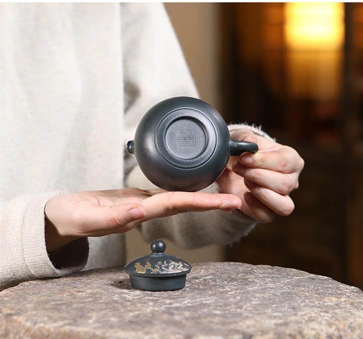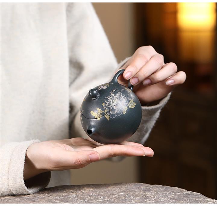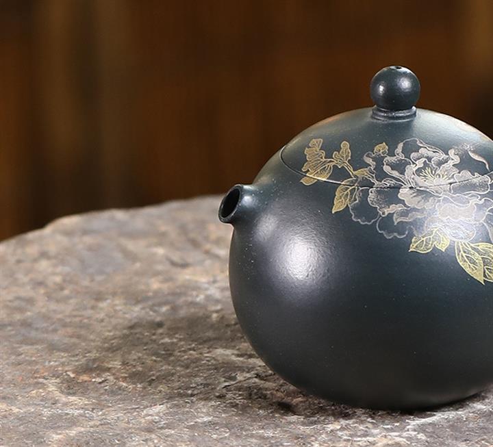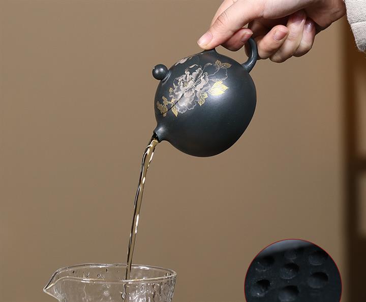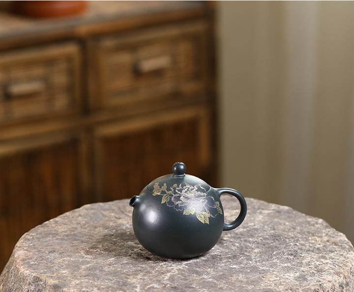 原礦玄鐵石黃浮花浪蕊茶壺POT7024